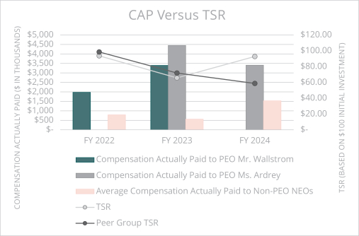 Pay for performance. Our compensation program allows our Talent and Compensation Committee to determine pay based on a comprehensive view of quantitative and qualitative factors designed to produce long-term business success. The correlation between our financial results and executive officer compensation awarded, as described in the “Executive Compensation Discussion and Analysis” or “CD&A” which follows in this proxy statement, aligns the interests of our executive officers with those of the Company. Specifically in fiscal 2024: