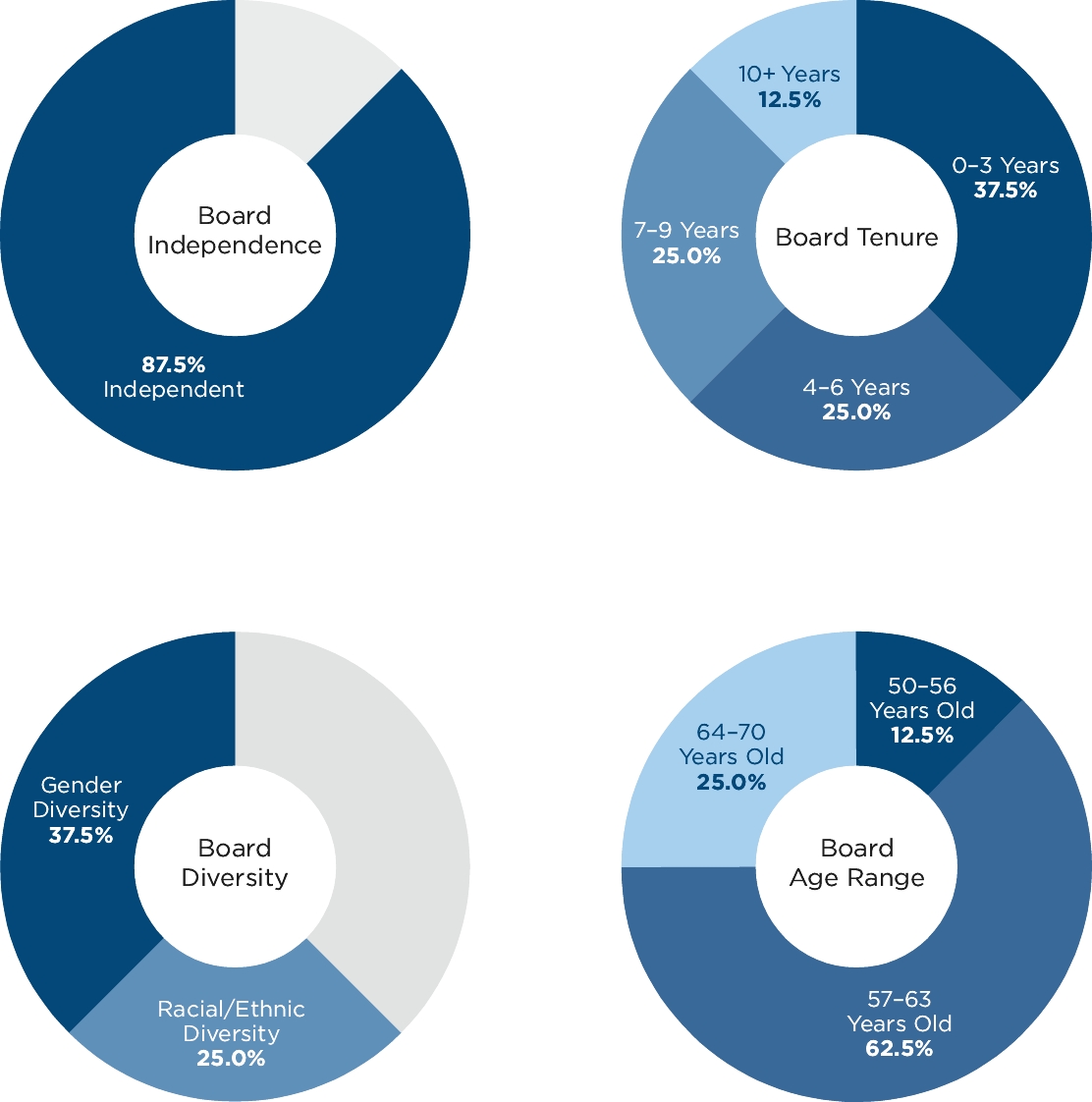 Our Board continues to monitor best practices in corporate governance, sustainability, and executive compensation and via our ongoing shareholder engagement efforts, we continue to solicit input from our shareholders on these important topics.
