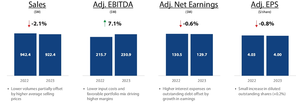 We also remained focused on our 2030 environmental goals to reduce both greenhouse gas emissions and water usage by 25%, on an absolute basis from a 2020 baseline. Building on the success we had in 2022, we were pleased to announce that we again exceeded our greenhouse gas emissions goal with a 32% absolute reduction in 2023, from our 2020 baseline. This puts us in a position to execute on our strategic growth plans and achieve our 2030 emissions reduction goal.