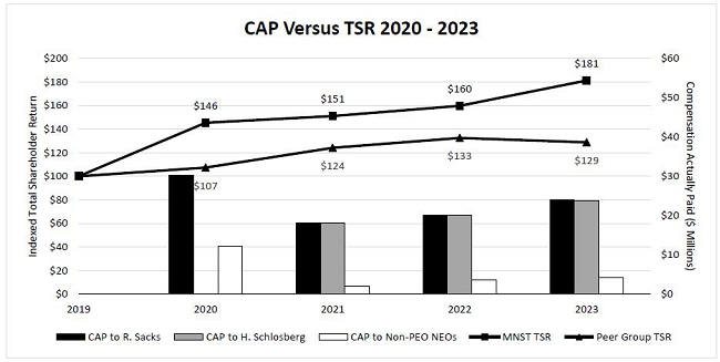 of Directors amended and restated the written charter for the Compensation Committee in February 2023, a copy of which is available on our website at http://investors.monsterbevcorp.com/governance.cfm. The Compensation Committee is responsible for reviewing, developing and recommending to the Board the appropriate management compensation policies, programs and levels, and reviewing the performances of the Chief Executive Officer, President and other senior executive officers periodically in relation to certain objectives. The Compensation Committee is ultimately responsible for determining, affirming or amending the level and nature of executive compensation of the Company. The Compensation Committee has access, at the Company’s expense, to independent, outside compensation consultants for both advice and competitive data for the purpose of making such determinations.