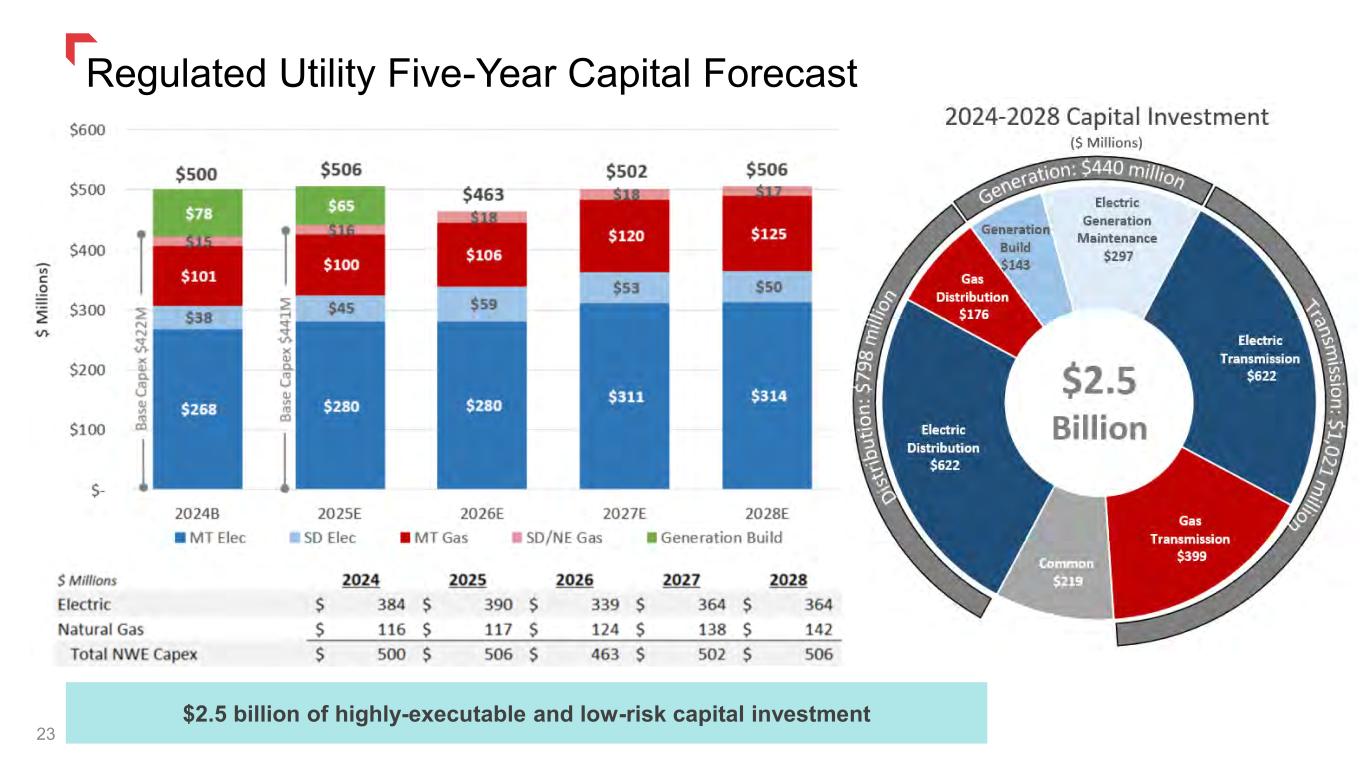 Maintaining Affordability for Our Customers 22 NorthWestern’s typical electric and natural gas bills are below national average even considering the significant burden of Montana property tax increases and recent severe price pressures, especially for market prices of energy, that have impacted customer rates. ** Electric - EEI Typical Bills and Average Summer and Winter Rates Report (2008-2023) *** Natural Gas - EIA U.S. Price of Natural Gas Delivered to Residential Customers (2008- Nov. 2023)