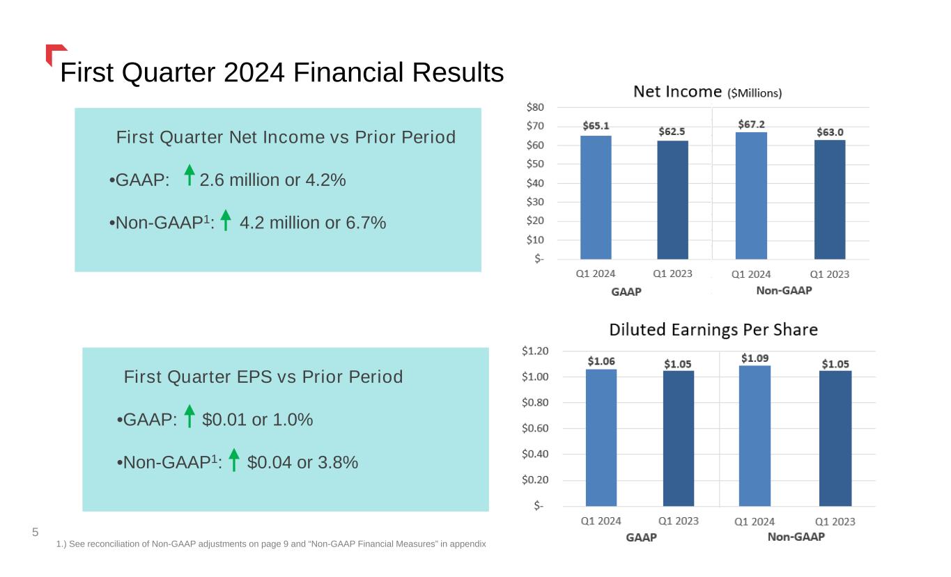 Adjusted non-GAAP diluted earnings per share for the quarter ended March 31, 2024 was $1.09 as compared to $1.05 for the same period in 2023. See “Adjusted Non-GAAP Earnings” and “Non-GAAP Financial Measures” sections below for more information on these measures.