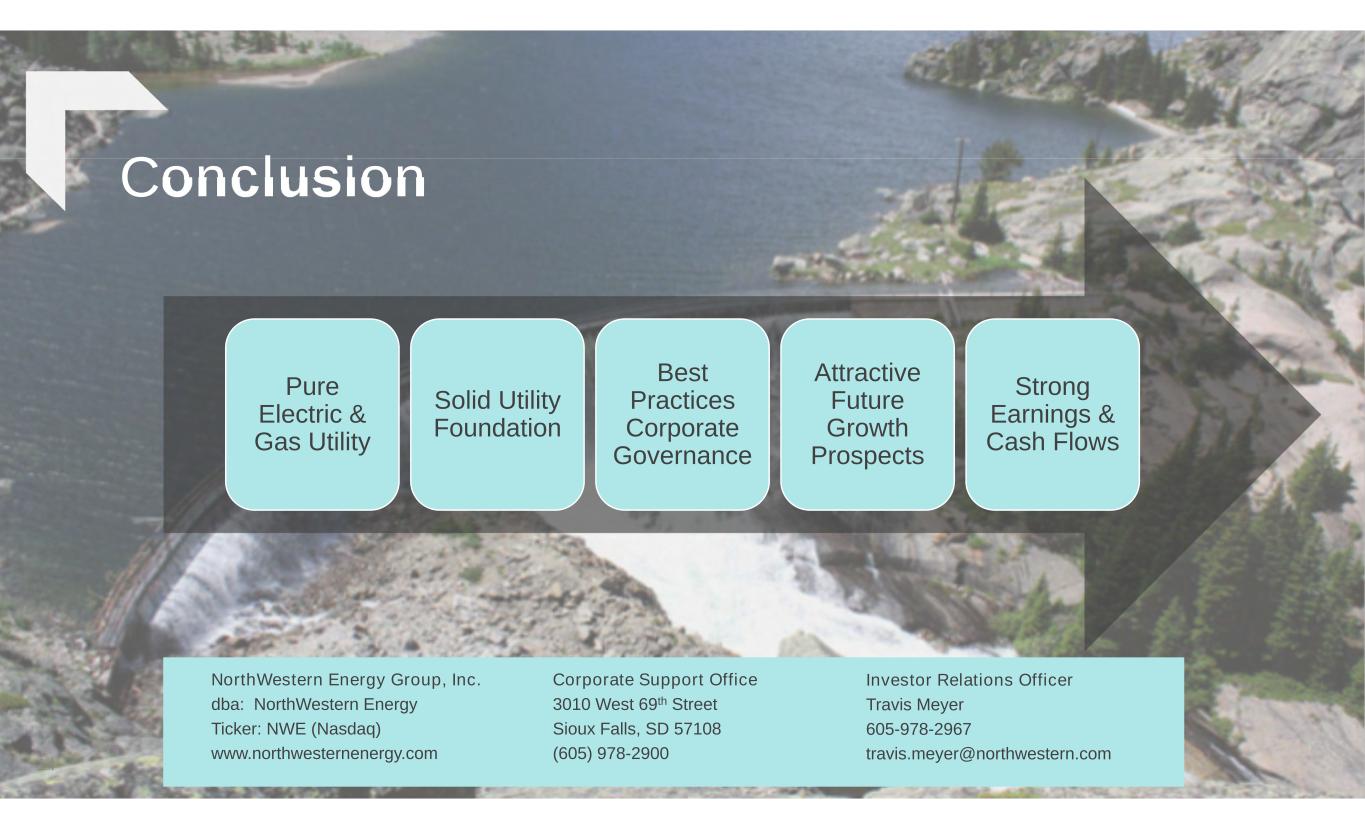 A live webcast of the investor conference call can be accessed from the Company’s website at www.northwesternenergy.com/earnings-registration. To listen and view the slideshow presentation, please go to the site at least 15 minutes in advance of the call to register. An archived webcast will be available shortly after the event and remain active for one year.