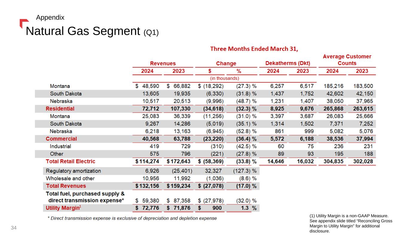 Electric Segment (Q1) (1) Utility Margin is a non-GAAP Measure. See appendix slide titled “Reconciling Gross Margin to Utility Margin” for additional disclosure. 33 Appendix