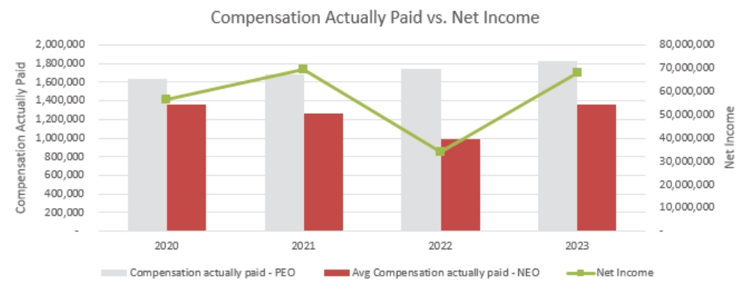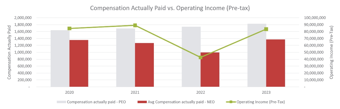 Year | | | Summary Compensation Table Total for PEO1 | | | Compensation Actually Paid to PEO2 | | | Average Summary Compensation Table Total for Non-PEO Named Executive Officers3 | | | Average Compensation Actually Paid to Non-PEOs Named Executive Officers4, | | | Value of initial fixed $100 investment based on: | | | Net Income | | | Operating Income (Pre-Tax)6 | |||