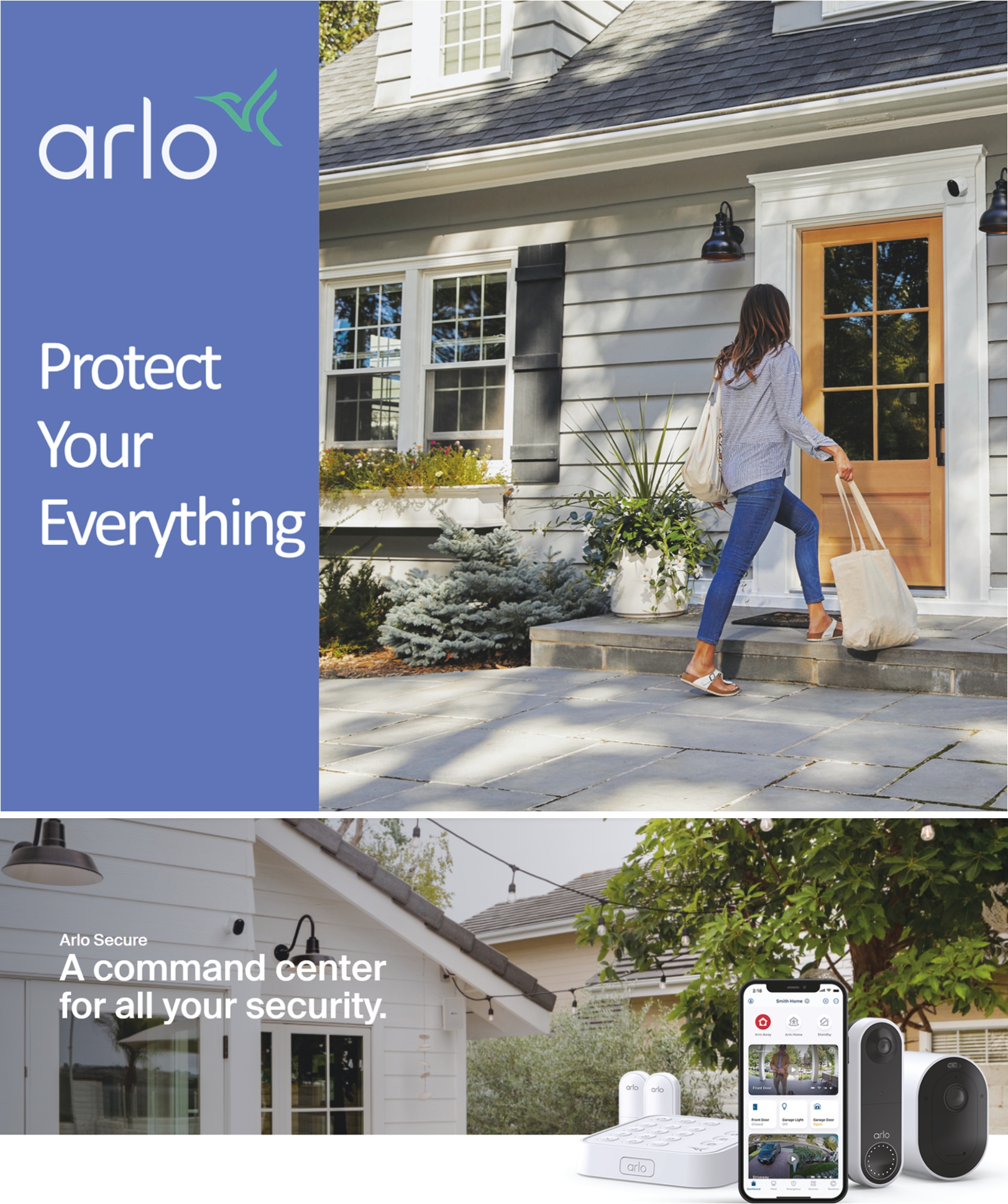 | | ![]() | | | Arlo Total Security is Arlo’s comprehensive subscription service that offers 24/7 professional monitoring and security hardware with affordable monthly pricing and no upfront costs. At the heart of these innovative subscriptions is Arlo’s Home Security System, which uses a first-of-its-kind, all-in-one multi-sensor capable of eight different sensing functions. With its comprehensive design, the Arlo multi-sensor can be placed anywhere, from walls to windows and doors, to under sinks and water heaters, to detect motion, door/window openings and tilt, water leaks, freezing temperatures, lighting changes and T3/T4 smoke/CO alarm audio sirens. Managed through the Arlo Secure App, the award-winning security system pairs with Arlo’s advanced video security cameras, such as the Arlo Pro 5s, to enable video verification by 24/7 Professional Monitoring security experts of an emergency situation – a growing requirement across municipalities to reduce false alarms and unnecessary utilization of emergency services. | |