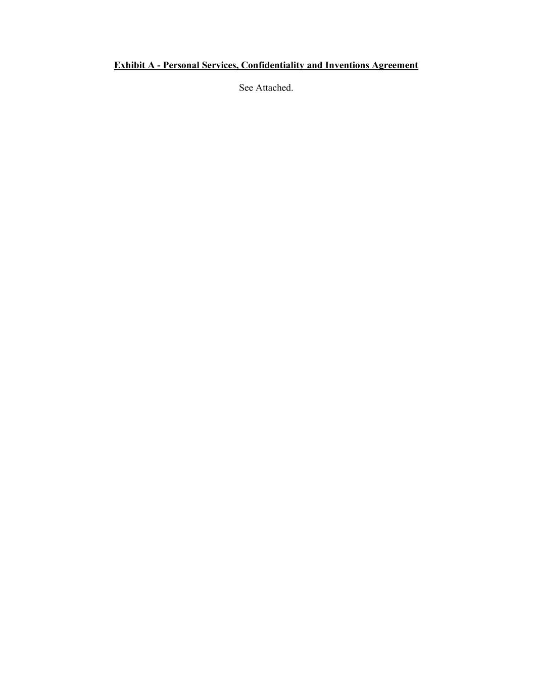 Exhibit A - Personal Services, Confidentiality and Inventions Agreement See Attached.