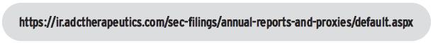 Additionally, you can find a copy of the Proxy Statement and our Annual Report on Form 10-K on the website of the U.S. Securities and Exchange Commission (the “SEC”) at sec.gov. You may also obtain a printed copy of the proxy materials at no cost, upon written or oral request to us at the following address: Investor Relations, ADC Therapeutics SA, c/o ADC Therapeutics America, Inc., 430 Mountain Avenue, 4th Floor, Murray Hill, NJ 07974, (908) 731-5556.
