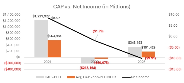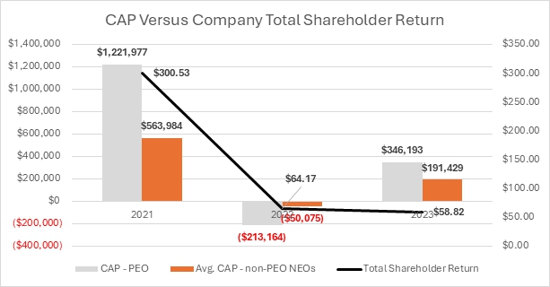 The following graphs show the relationship between the compensation actually paid (“CAP”) for our PEO and our total shareholder return and net income (loss) over the prior three fiscal years ending December 31, 2023, 2022 and 2021, as reported in the tables above. Total shareholder return values are measured from December 31, 2020, based on an assumed fixed investment of $100.
