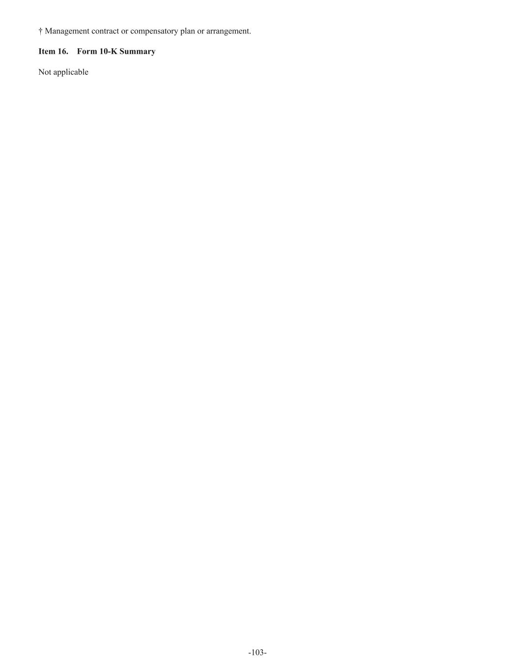 † Management contract or compensatory plan or arrangement. Item 16. Form 10-K Summary Not applicable -103-