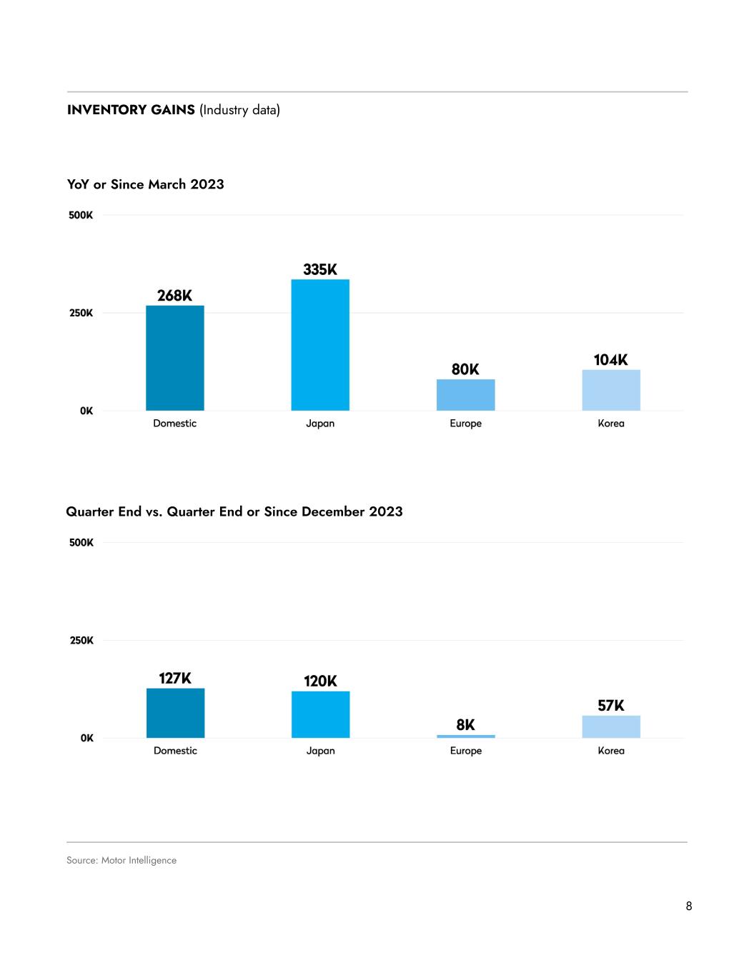 8 INVENTORY GAINS (Industry data) Source: Motor Intelligence YoY or Since March 2023 Quarter End vs. Quarter End or Since December 2023