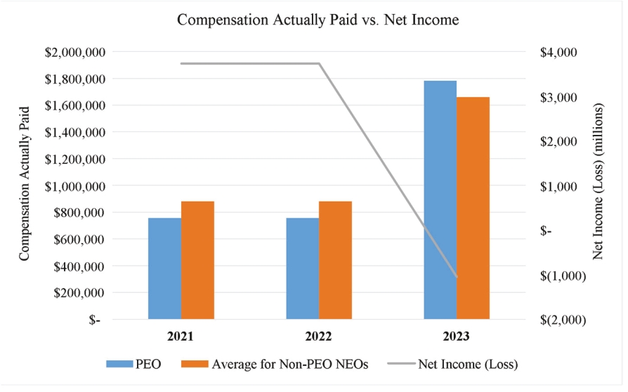 Year | | | Summary Compensation Table Total for First PEO(1) | | | Summary Compensation Table Total for Second PEO(2) | | | Compensation Actually Paid to First PEO(3) | | | Compensation Actually Paid to Second PEO(4) | | | Average Summary Compensation Table Total for Non-PEO NEO’s(5) | | | Average Compensation Actually Paid to Non-PEO NEO’s(6) | | | Value of Initial Fixed $100 Investment Based on Total Shareholder Return(7) | | | Net Income (Loss) (millions)(8) |
