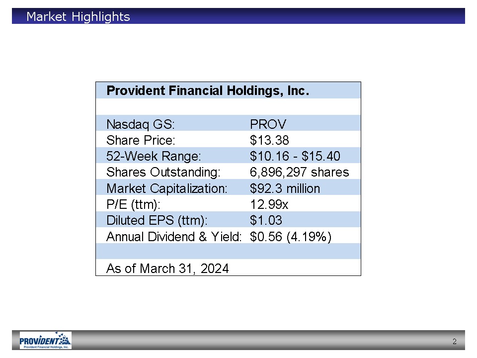 PROVIDENT FINANCIAL HOLDINGS, INC.