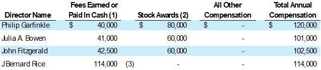 (5) Mr. Kang, Dzyak, Holloway and Sparling were granted 10,000 shares of restricted common stock, subject to time vesting at January 1, 2024. Amounts represent the grant date fair value of the award made in 2021 as a result of 2020 performance. |