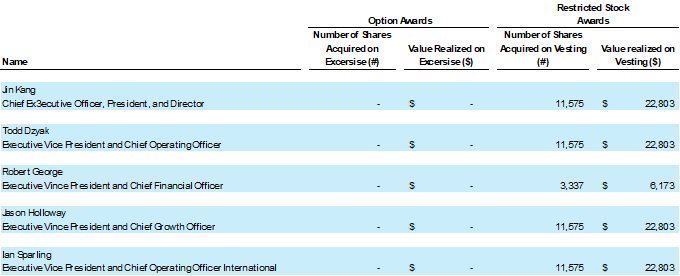 (4) Mr Kang was granted 20,000 shares of restricted stock on May 1, 2020 that vest 25% per year on January 1 of each year subsequent to grant. |