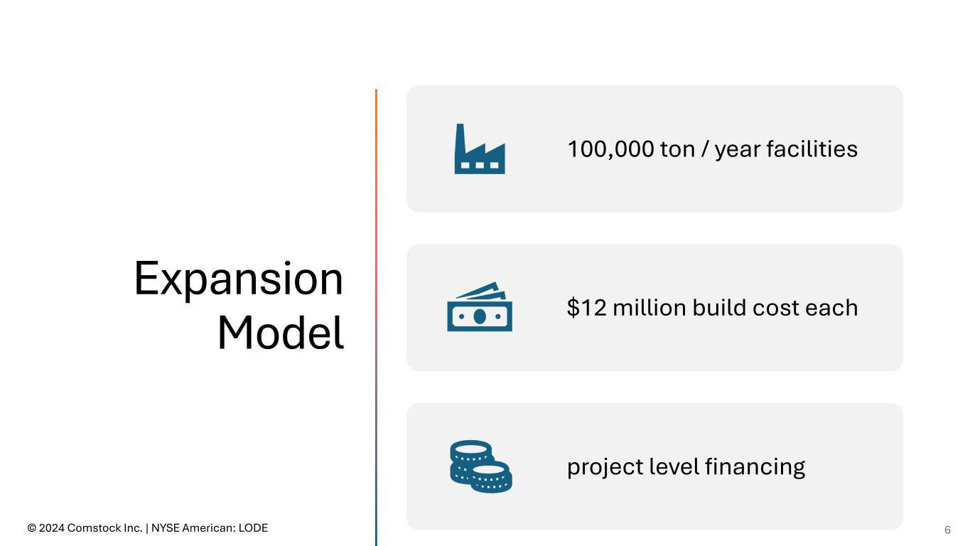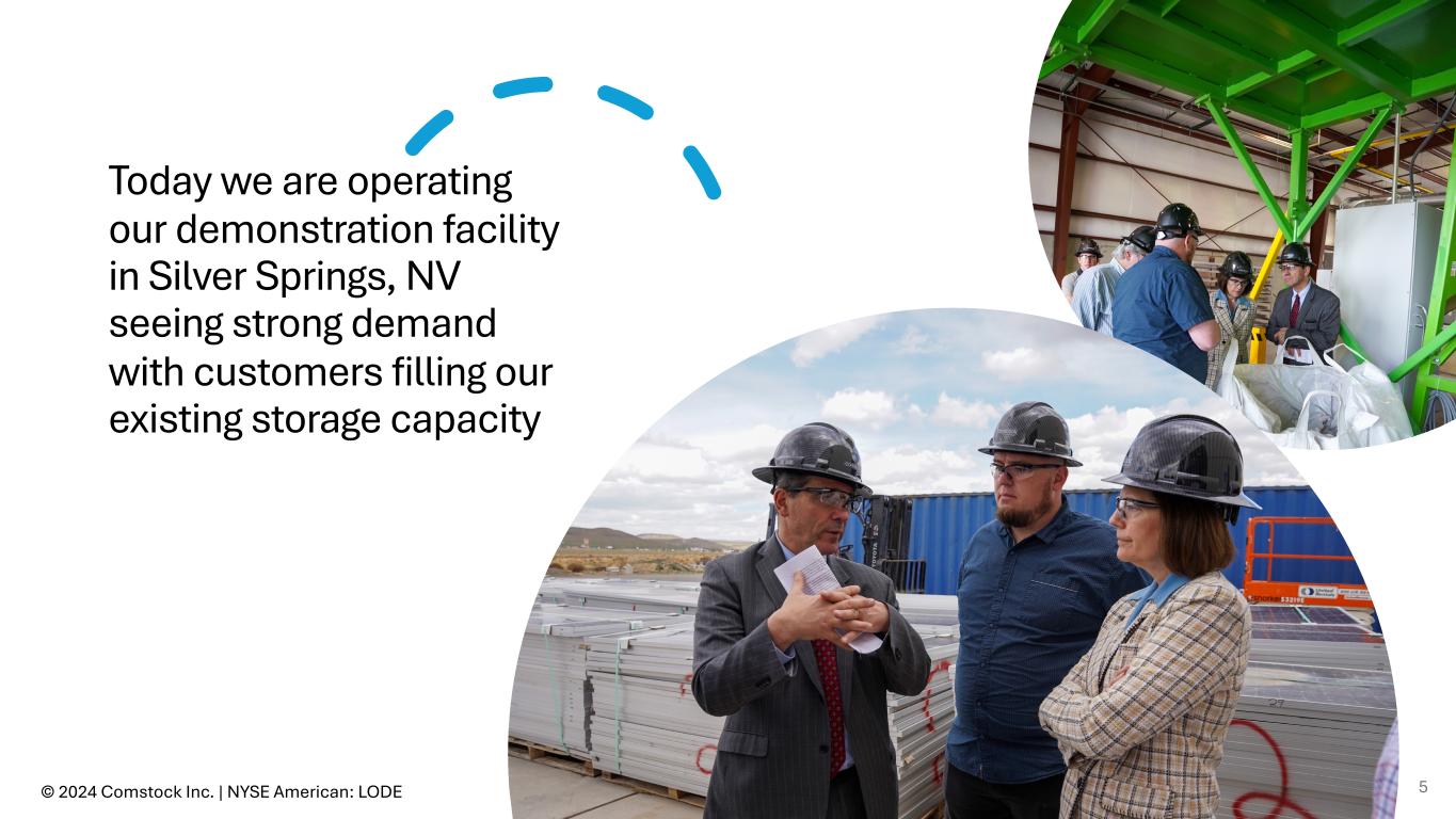 Today we are operating our demonstration facility in Silver Springs, NV seeing strong demand with customers filling our existing storage capacity © 2024 Comstock Inc. | NYSE American: LODE 5