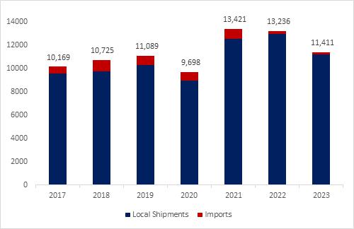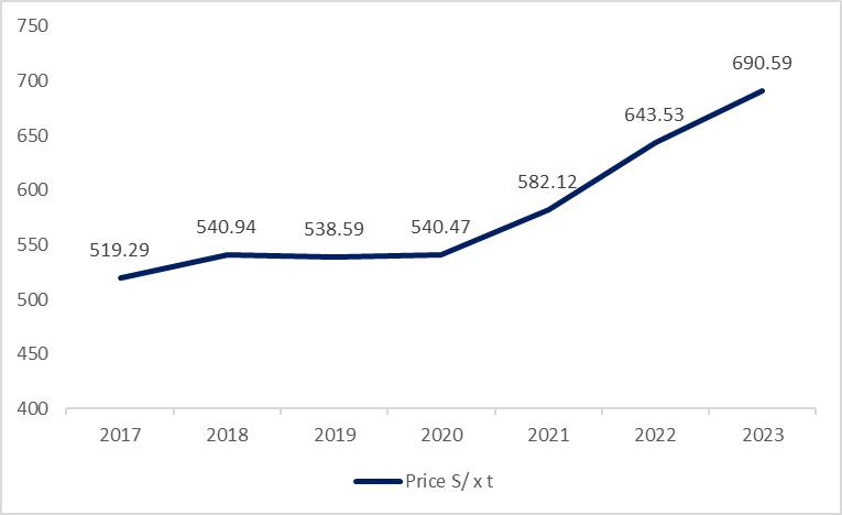 Cement sales at Rioja plant are, on average, S/ 275 million per year (for the period 2024-2047), and the average EBITDA margin for the same period is 29%. Due to the increase in cement shipments, the installed capacity of clinker is exceeded, and it is necessary to start importing a minimum quantity from year 2026 until year 2047.