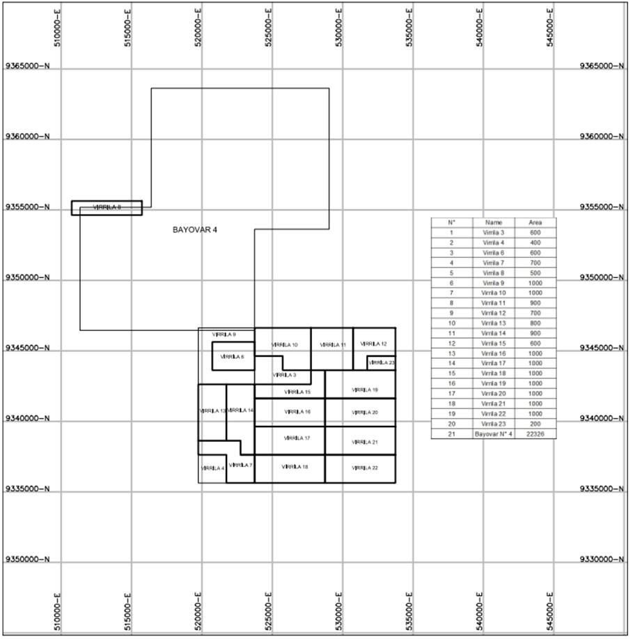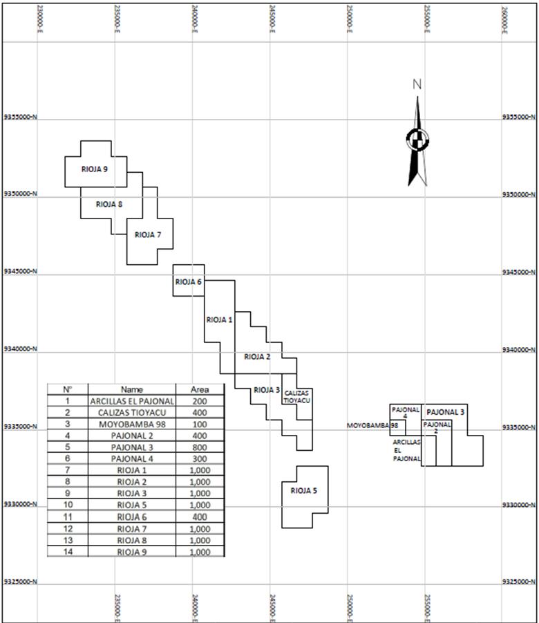 Figure 18 Concession Calizas Tioyacu and adjacent concessions.