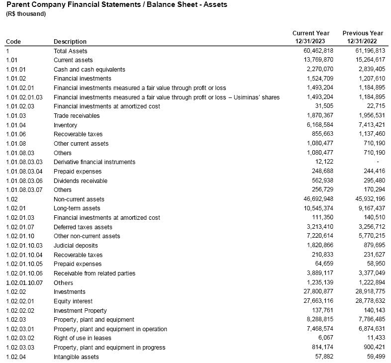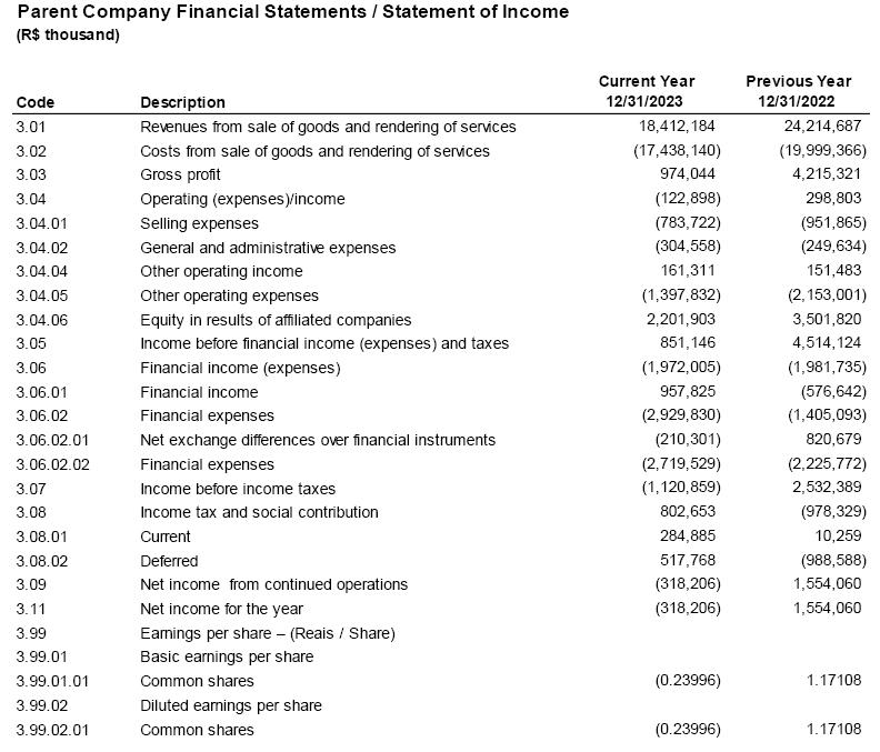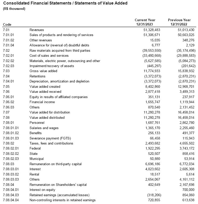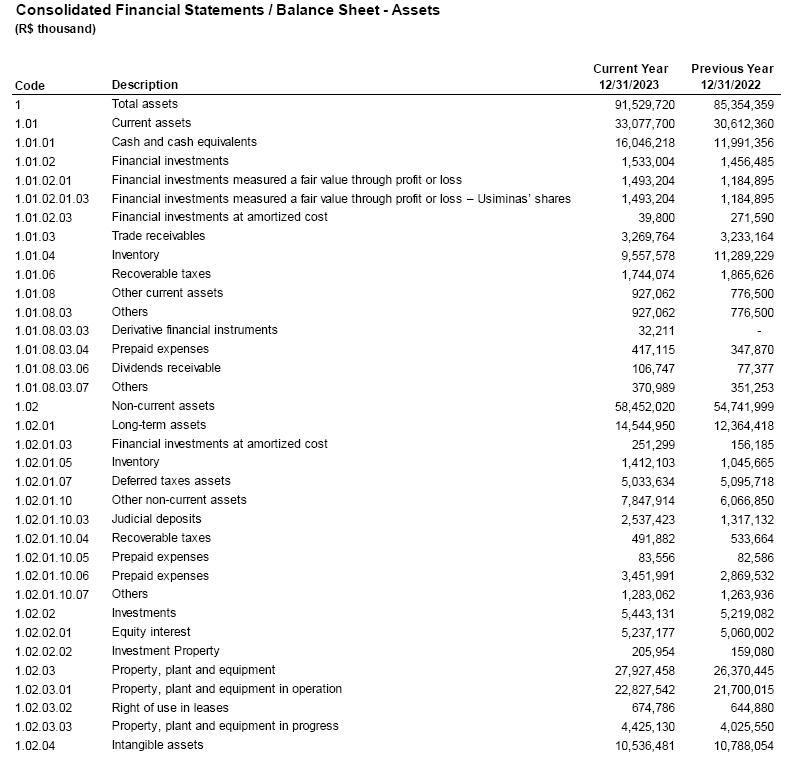 The Audit Committee ("Committee") of Companhia Siderúrgica Nacional ("Company"), in the exercise of its legal responsibilities and duties as provided in the Internal Regulations, reviewed and evaluated the Company's Financial Statements, along with the Independent Auditors' Report and the Management Report for the fiscal year ended on December 31, 2023 ("2023 Financial Statements").