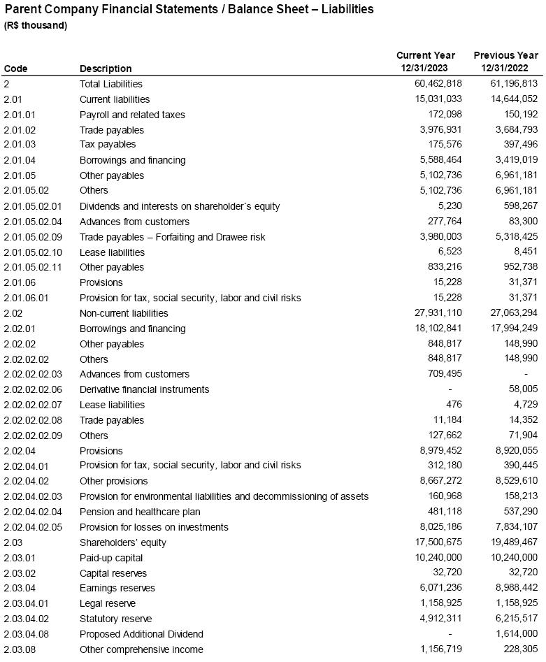 As Executive Officers of Companhia Siderúrgica Nacional, we declare pursuant to Article 27, paragraph 1º, item V of CVM Instruction 80, of March 29,2022, that we reviewed, discussed and agreed with the opinion expressed on the Independent Auditors’ Report related to the Company’s Financial Statements for the quarter ended December 31,2023.