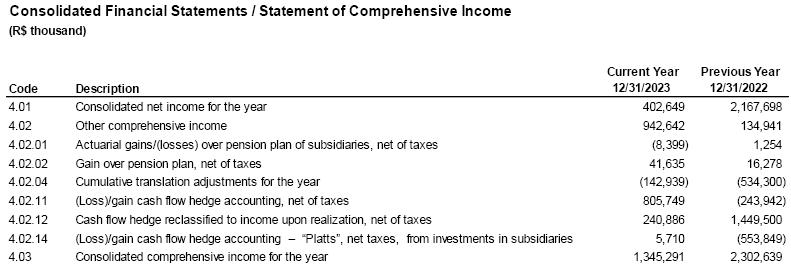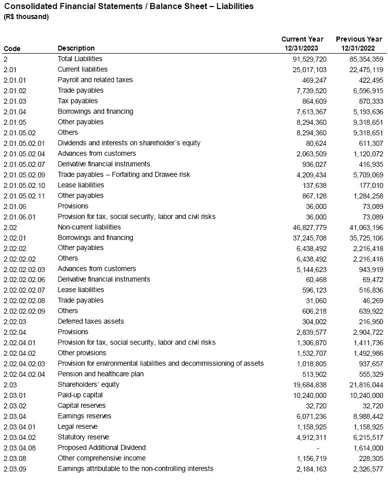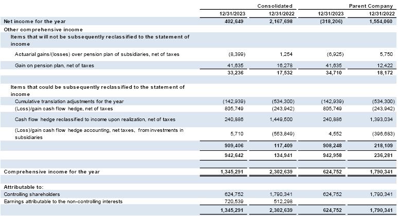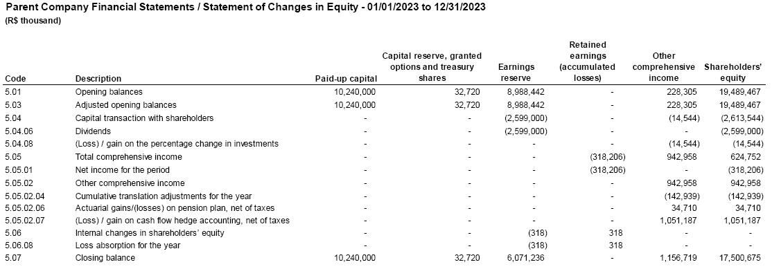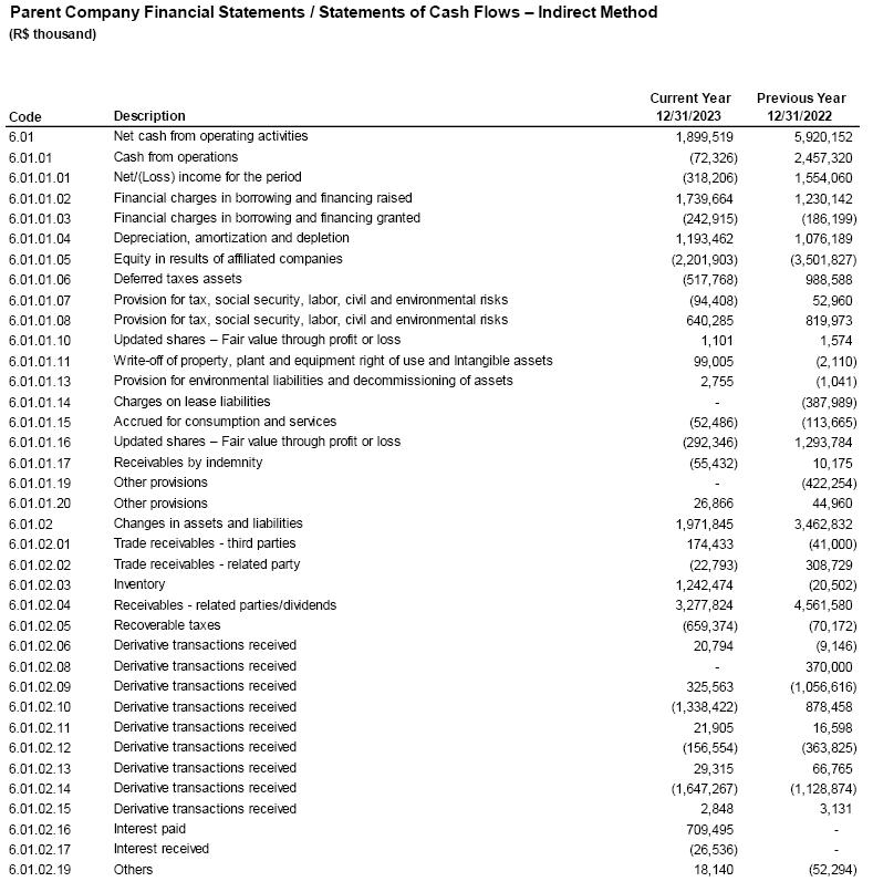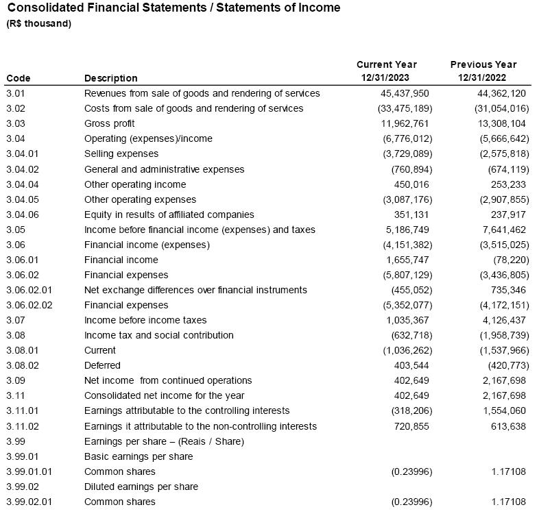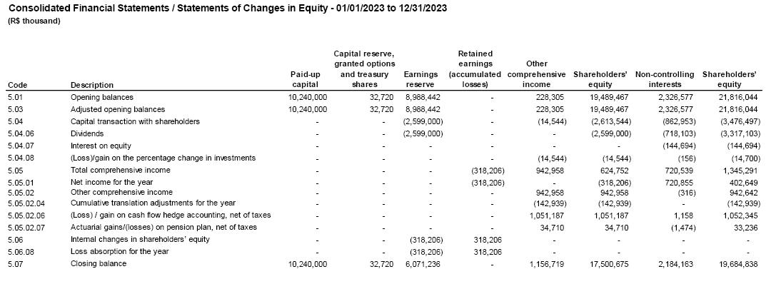 The audit of the Company's financial statements, for CVM fillings, is in the responsibility of Mazars Auditores Independentes ("Mazars"). And Grant Thornton Auditores Independentes Brasil ("GT") is responsible for conducting the SEC audit, as well as for auditing the financial statements of all its subsidiaries, affiliates, joint ventures, and controlled companies whose accounts are included or reflected in the Company's consolidated financial statements, in accordance with applicable standards. Mazars is also responsible for the special review of quarterly reports (ITRs). The independent auditors' report reflects the result of their verifications, with the presentation of their opinions on the reliability of the fiscal year´s financial statements in accordance with Brazilian accounting practices, International Financial Reporting Standards (IFRS) issued by the International Accounting Standards Board (IASB), CVM standards, and provisions of Brazilian corporate law. Regarding the exercise ended on December 31, 2023, Mazars issued a report on March 6, 2024, containing an unmodified opinion.