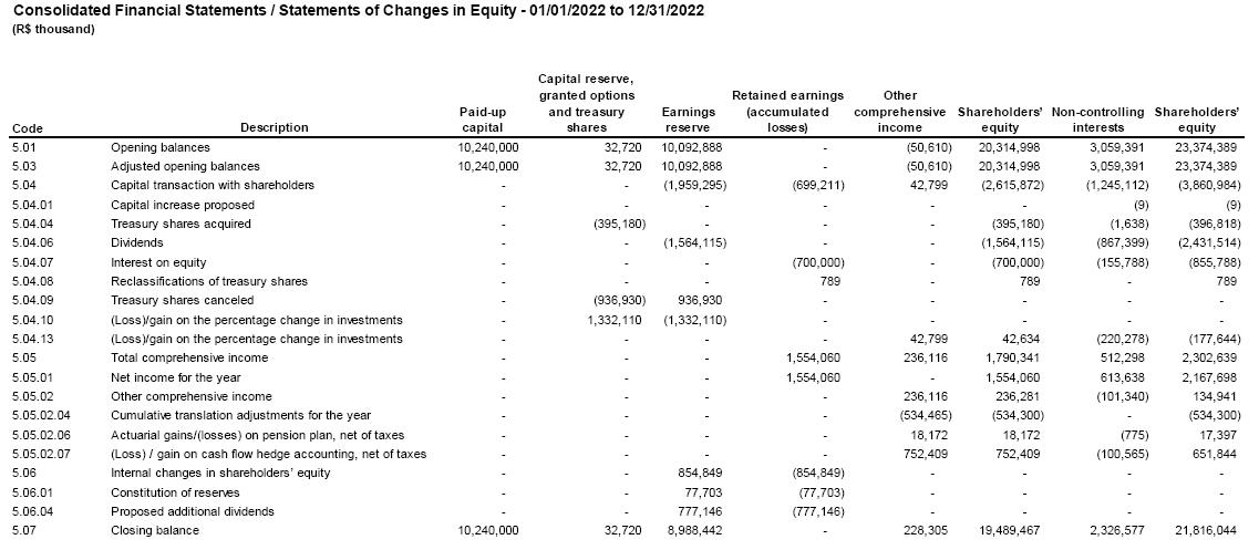 In the exercise of its functions and legal responsibilities, and in accordance with the Internal Regulations, the Committee analyzed the financial statements accompanied by the audit report with the independent auditors´ opinion, the annual report of the management, and the proposal for the allocation of results, referring to the fiscal year ended December 31, 2022. Considering the information provided by the Company's management and the independent auditors, who issued an unmodified opinion report on March 8, 2022, the Committee recommends, unanimously, the favorable opinion of the Company's Board of Directors regarding such documents and their submission to the deliberation of the Company´s Ordinary General Meeting to be convened.