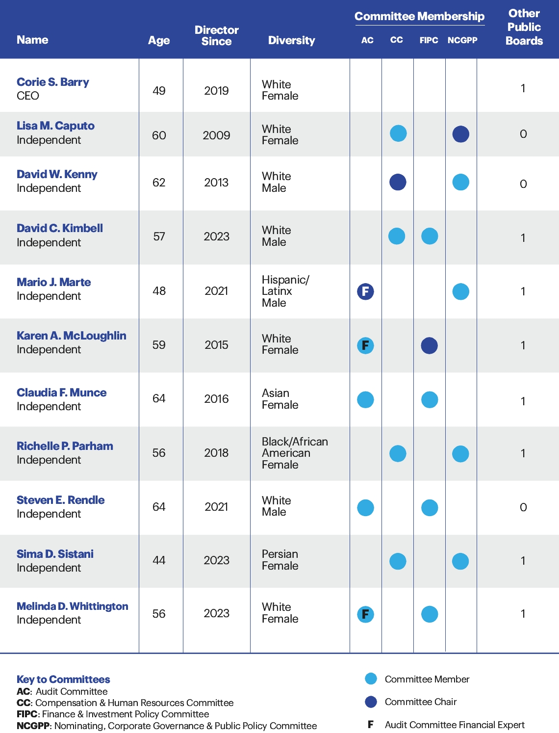 (4) | Ms. Caputo is chair of the Nominating Committee. |
