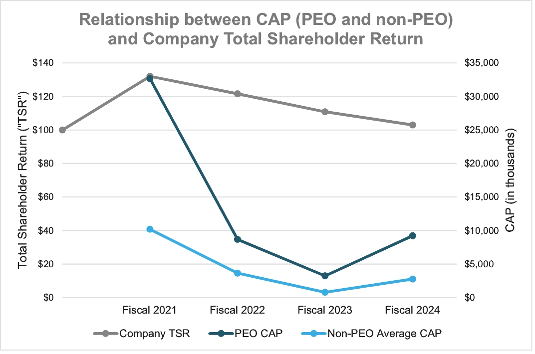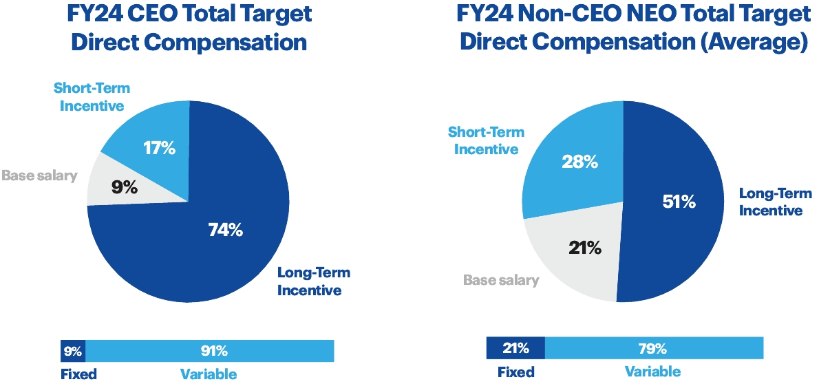 | | | | We are seeking, in an advisory capacity, approval by our shareholders of our named executive officer compensation, the “Say on Pay” vote. Our Compensation Discussion & Analysis (“CD&A”), which begins on page 49, describes our executive compensation programs and decisions for fiscal 2024. | | | | ||