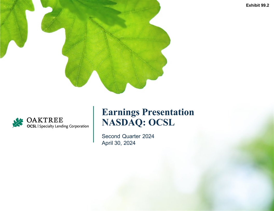 Exhibit 99.2 Earnings Presentation NASDAQ: OCSL Second Quarter 2024 April 30, 2024