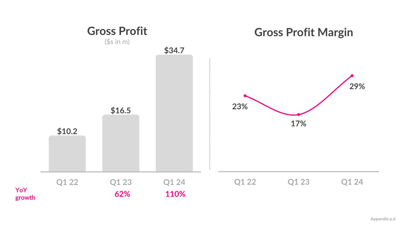 Gross Profit ($s in m) Gross Profit Margin 110%62% 23% 17% 29% Q1 22 Q1 23 Q1 24 YoY growth Appendix p.6 $10.2 $16.5 $34.7 Q1 22 Q1 23 Q1 24