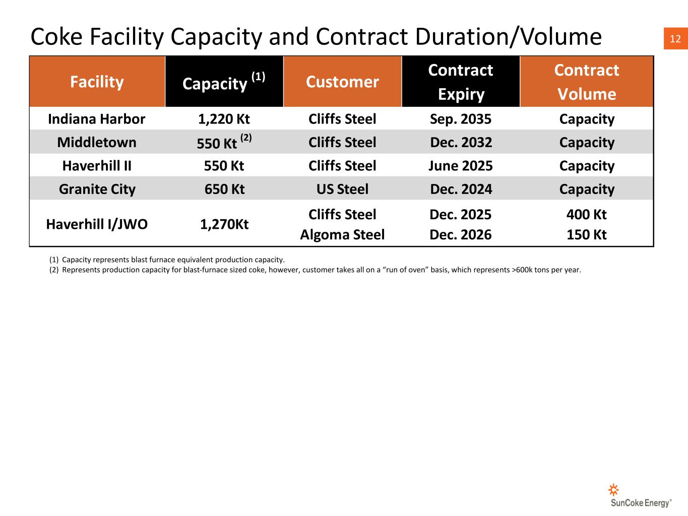 SunCoke Energy, Inc. (NYSE: SXC) supplies high-quality coke to domestic and international customers. Our coke is used in the blast furnace production of steel as well as the foundry production of casted iron, with the majority of sales under long-term, take-or-pay contracts. We also export coke to overseas customers seeking high-quality product for their blast furnaces. Our process utilizes an innovative heat-recovery technology that captures excess heat for steam or electrical power generation and draws upon more than 60 years of cokemaking experience to operate our facilities in Illinois, Indiana, Ohio, Virginia and Brazil. Our logistics business provides export and domestic material handling services to coke, coal, steel, power and other bulk customers. The logistics terminals have the collective capacity to mix and transload more than 40 million tons of material each year and are strategically located to reach Gulf Coast, East Coast, Great Lakes and international ports. To learn more about SunCoke Energy, Inc., visit our website at www.suncoke.com.