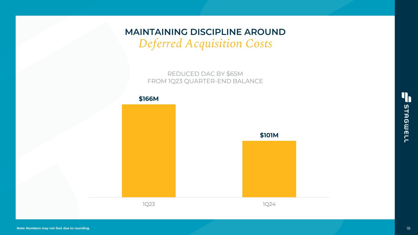 18 MAINTAINING DISCIPLINE AROUND Deferred Acquisition Costs REDUCED DAC BY $65M FROM 1Q23 QUARTER-END BALANCE $166M $101M 1Q23 1Q24 Note: Numbers may not foot due to rounding.