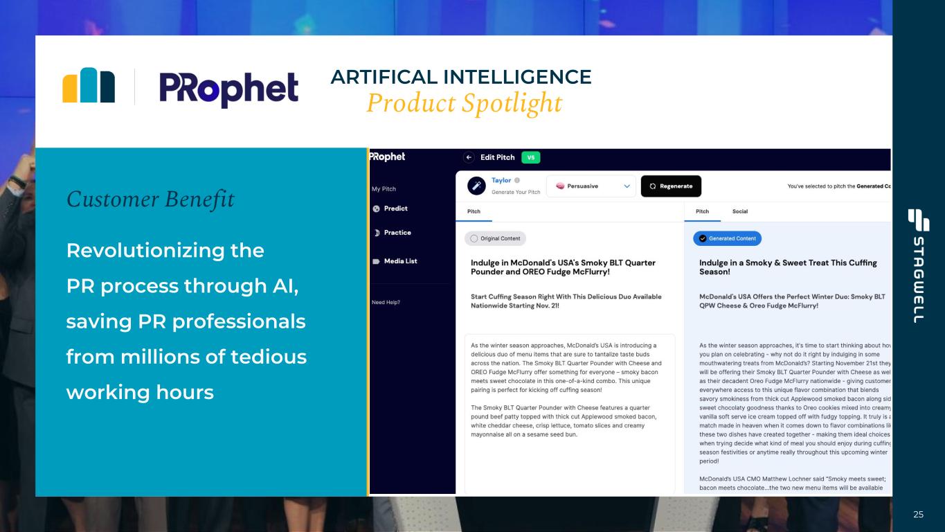 25 ARTIFICAL INTELLIGENCE Product Spotlight Customer Benefit Revolutionizing the PR process through AI, saving PR professionals from millions of tedious working hours
