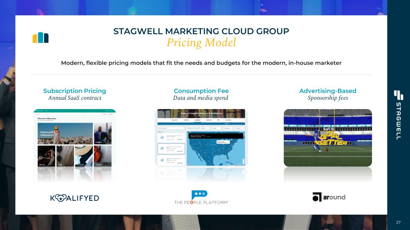 27 STAGWELL MARKETING CLOUD GROUP Pricing Model Modern, flexible pricing models that fit the needs and budgets for the modern, in-house marketer Subscription Pricing Annual SaaS contract Consumption Fee Data and media spend Advertising-Based Sponsorship fees