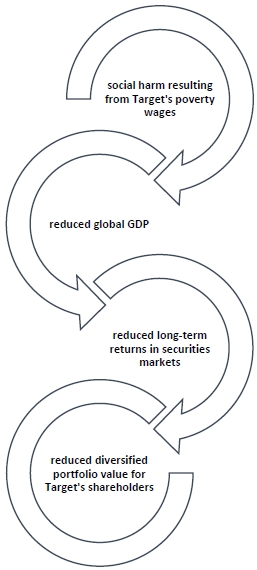 Figure 1 below illustrates how the chain of value destruction runs from Target’s poverty wages to its diversified shareholders’ financial returns, even if those decisions might benefit Target financially.