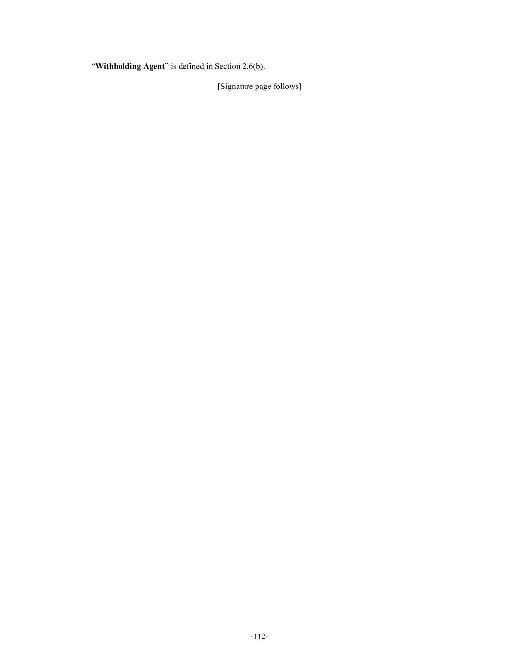 -112- “Withholding Agent” is defined in Section 2.6(b). [Signature page follows]