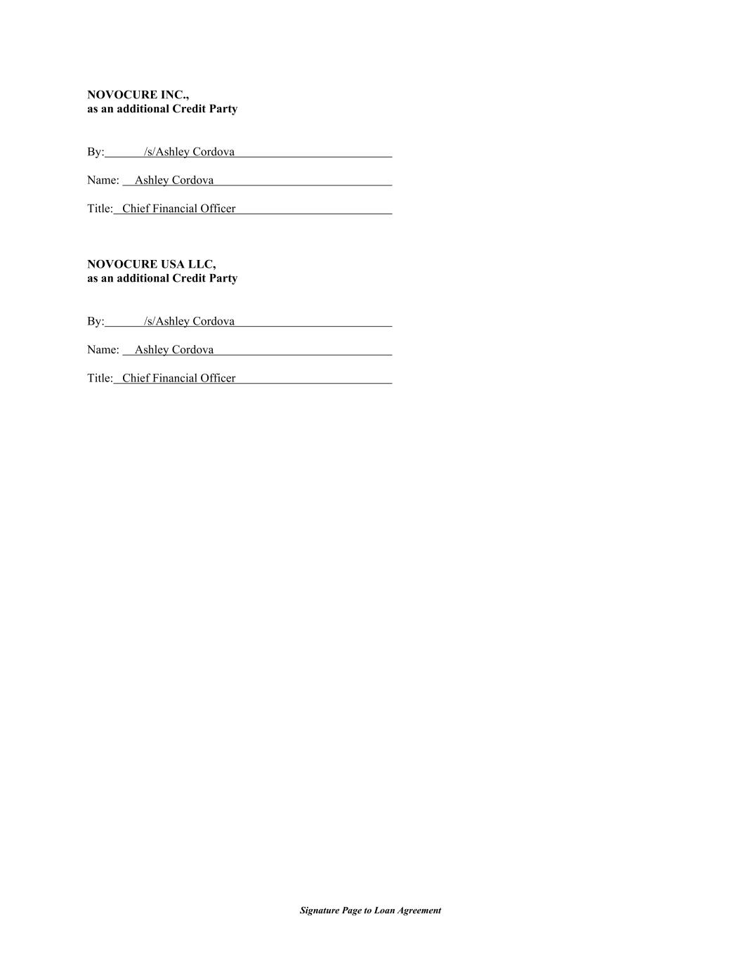 Signature Page to Loan Agreement NOVOCURE INC., as an additional Credit Party By: /s/Ashley Cordova Name: Ashley Cordova Title: Chief Financial Officer NOVOCURE USA LLC, as an additional Credit Party By: /s/Ashley Cordova Name: Ashley Cordova Title: Chief Financial Officer