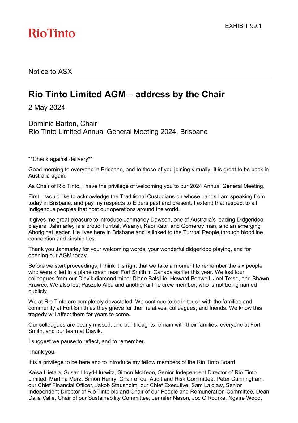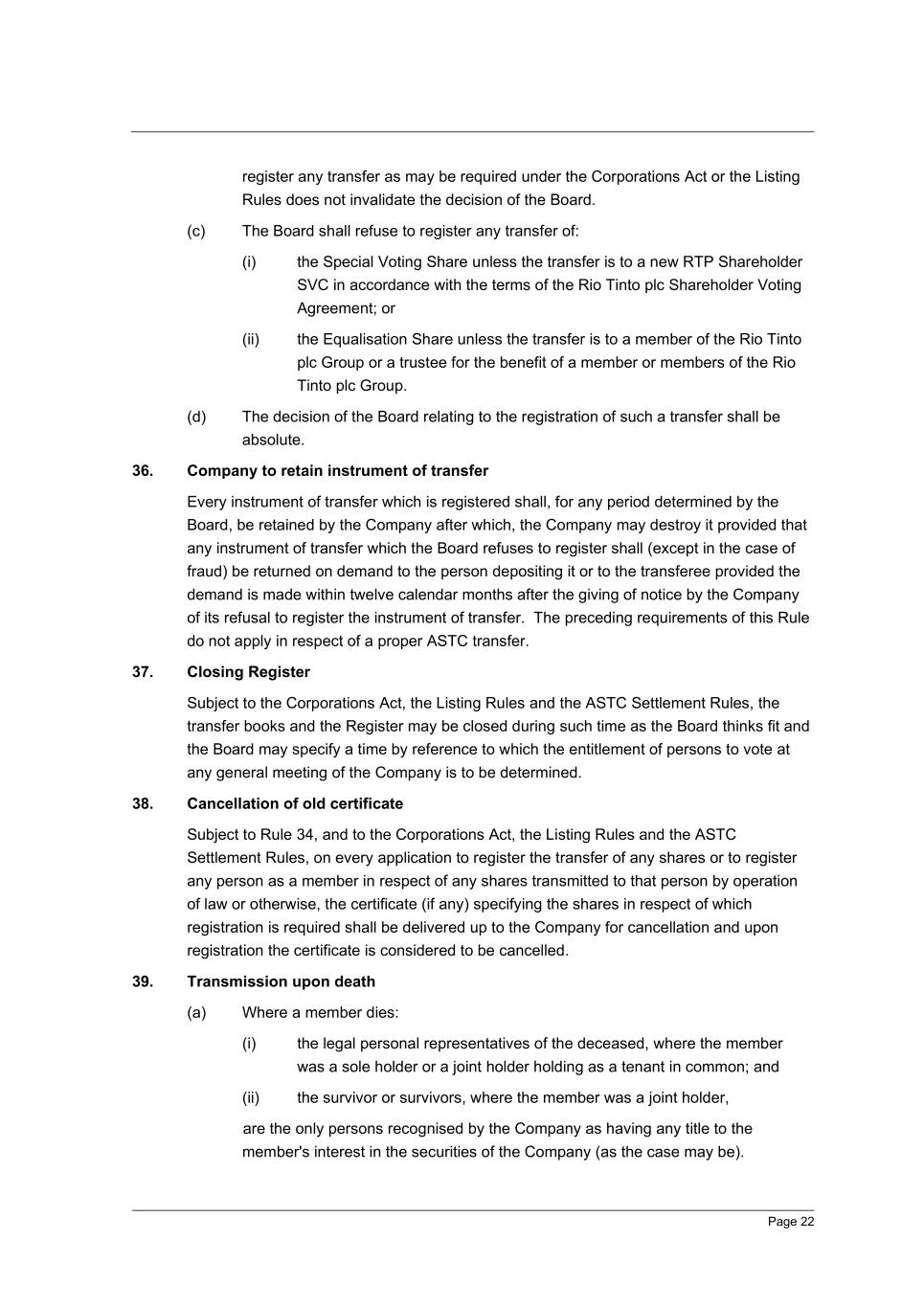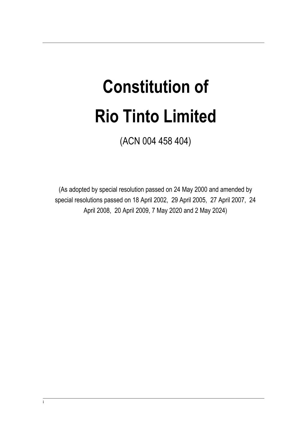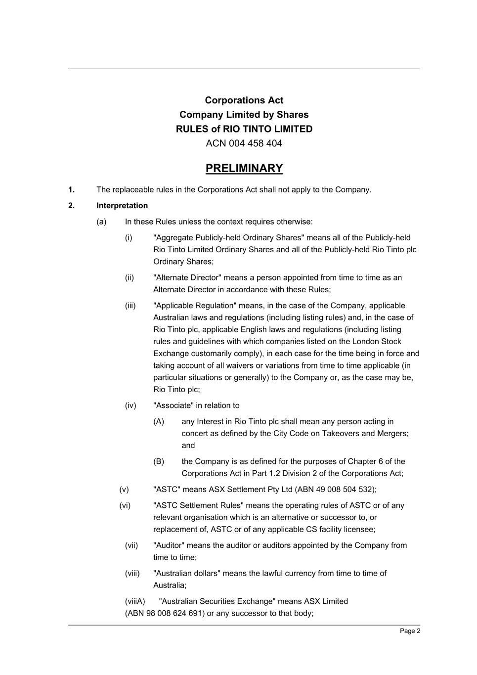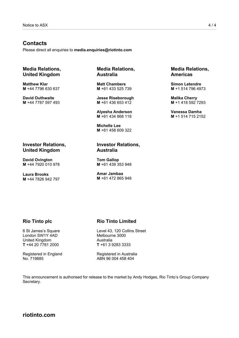 | Rio Tinto plc | Rio Tinto Limited | ||||