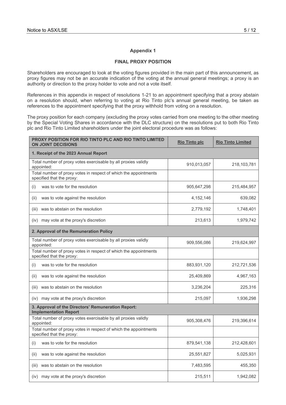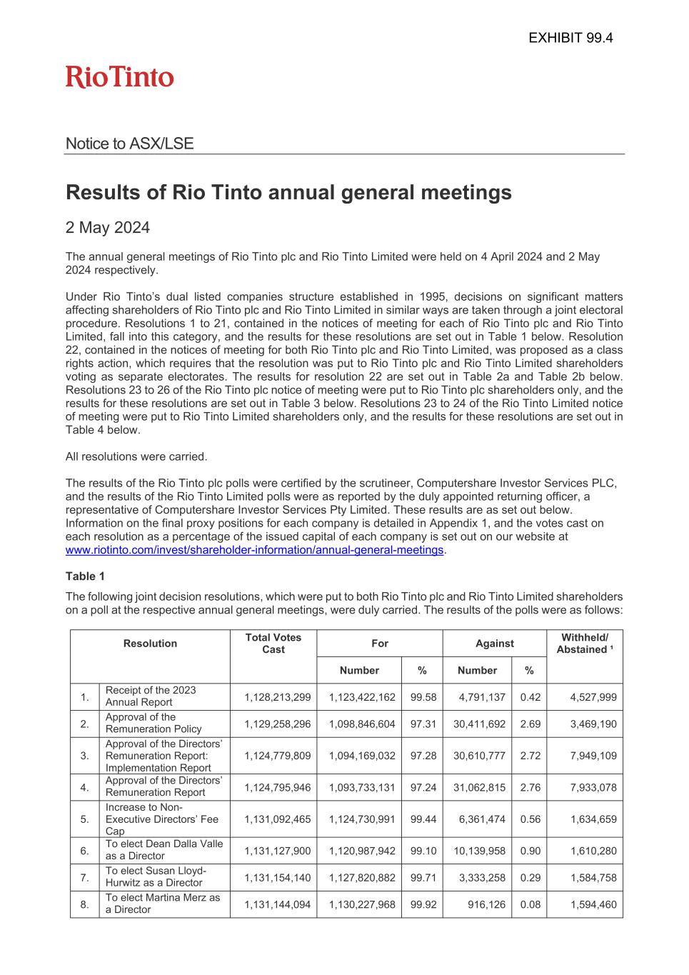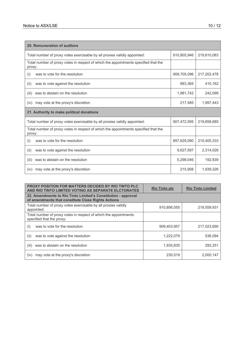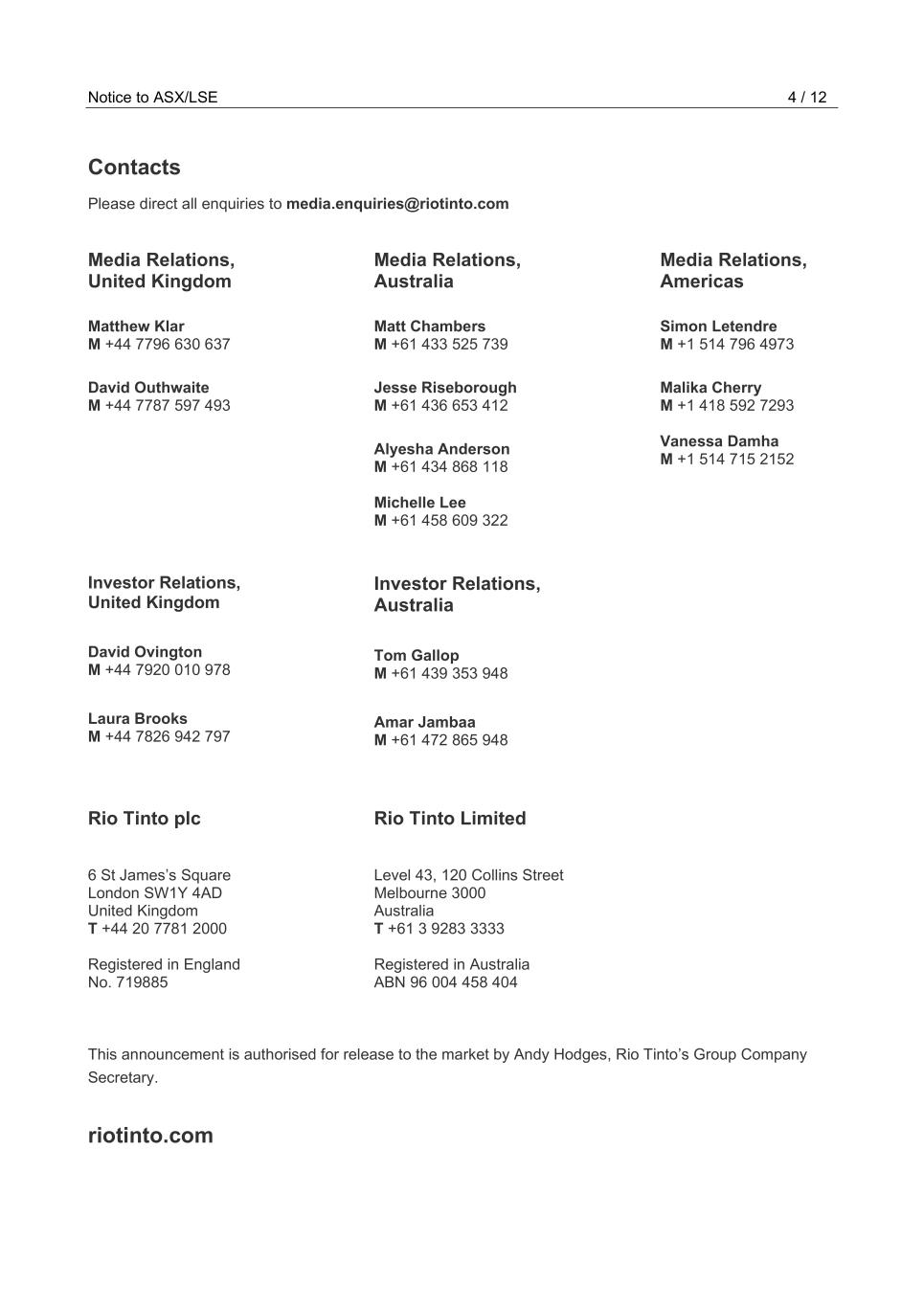 | Rio Tinto plc | Rio Tinto Limited | ||||||||||