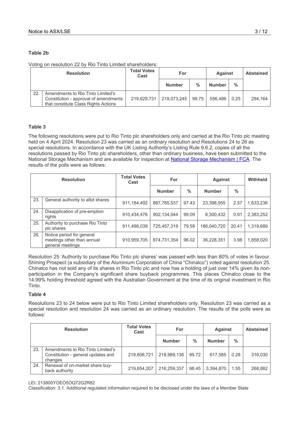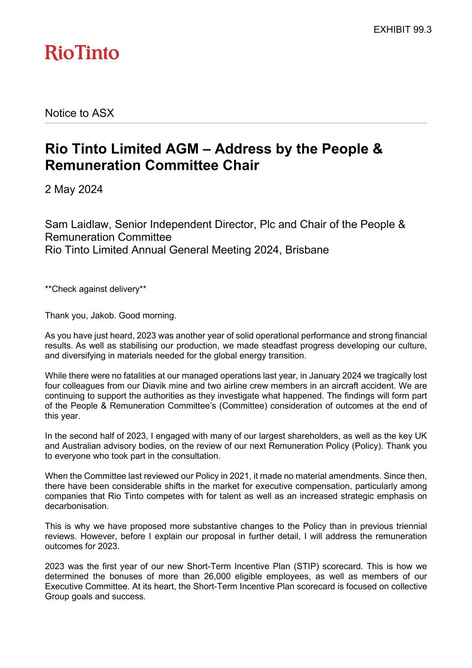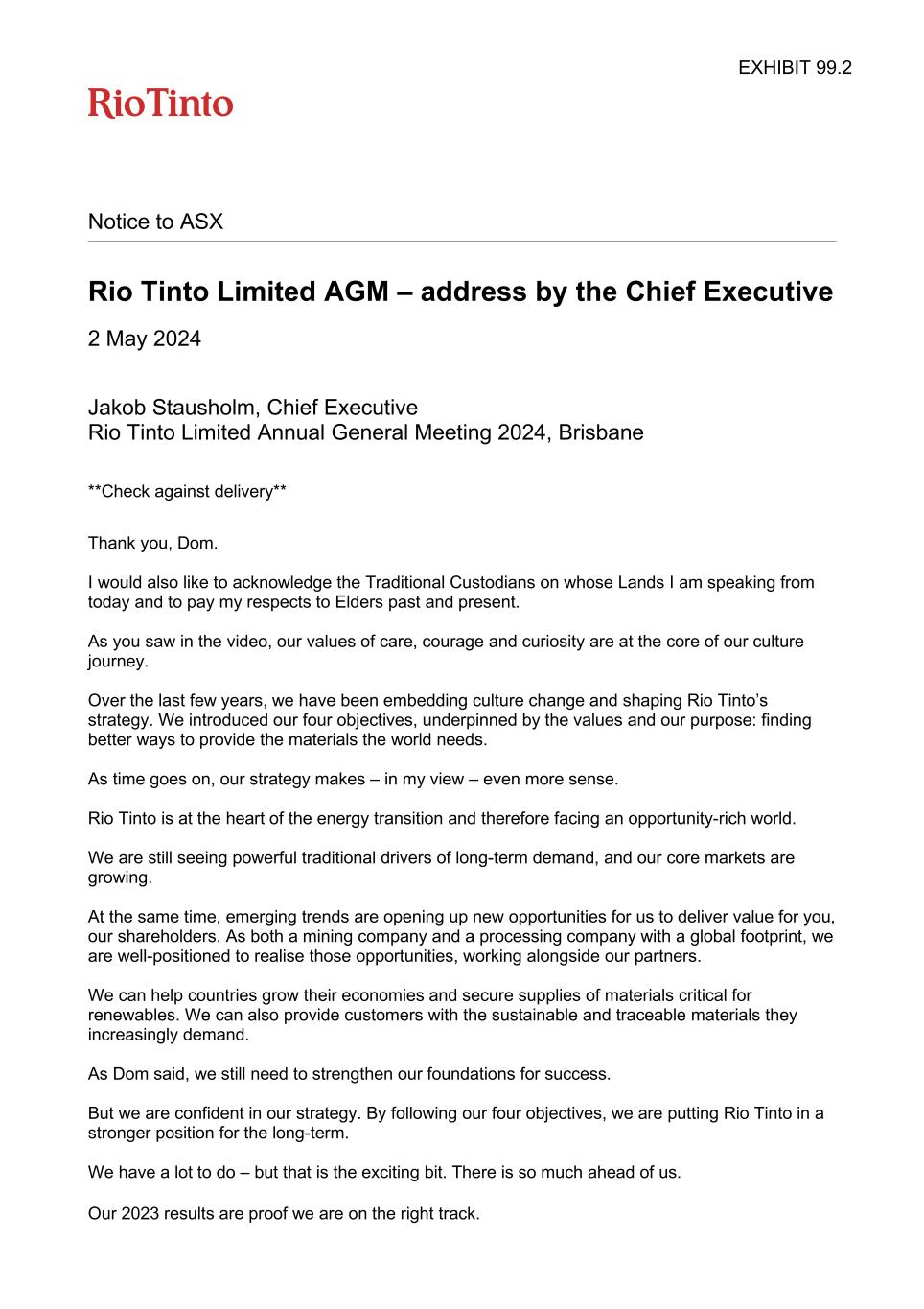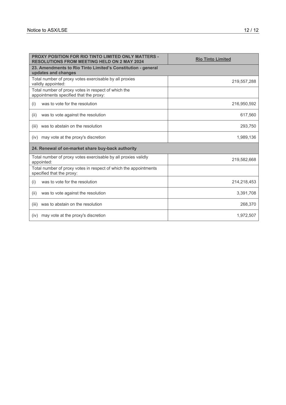 | Rio Tinto plc | Rio Tinto Limited | ||||||||||