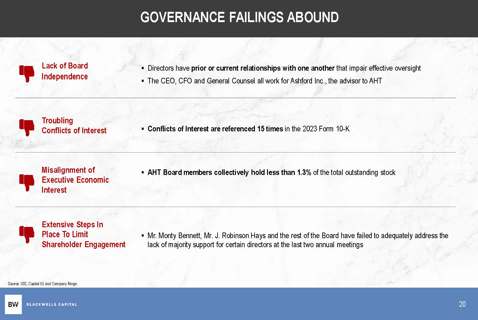 Stockholders are encouraged to review Blackwells’ presentation regarding the failures at Ashford released today at BlackwellsCap.com/public-markets.