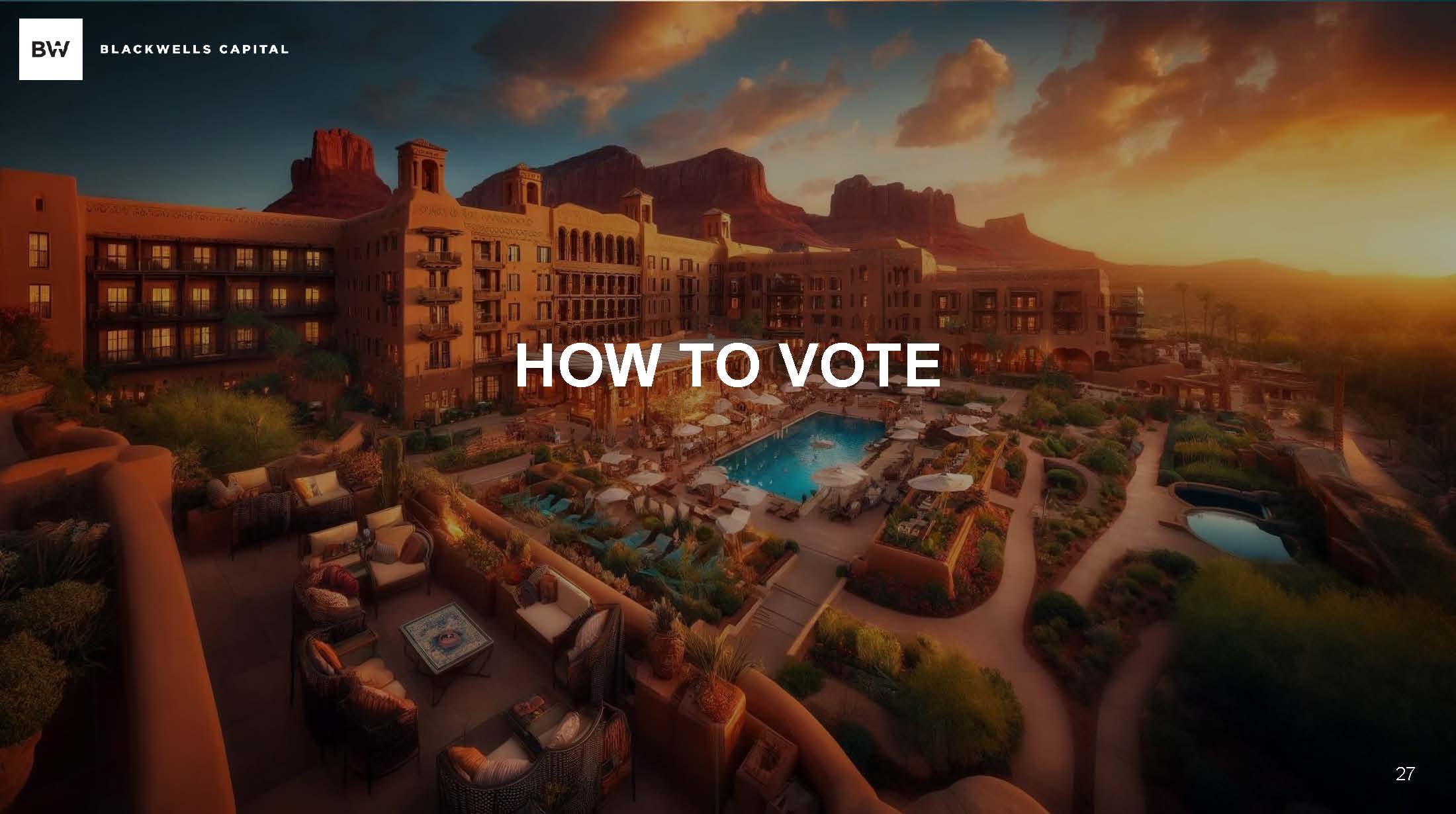 VOTING INFORMATION Ashford Hospitality Trust's 2024 Annual Meeting of Shareholders will be held on May 14, 2024 Please vote your proxy today on the GOLD proxy card “AGAINST” each of the Ashford Hospitality Trust’s nominees Blackwells recommends shareholders vote "AGAINST" Ashford Hospitality Trust’s proposal to obtain advisory approval of the Company’s executive compensation If you have any questions about voting your proxy or need replacement proxy materials, contact: MacKenzie Partners, Inc. 1 - 800 - 322 - 2885 (call toll free:) proxy@mackenziepartners.com 28