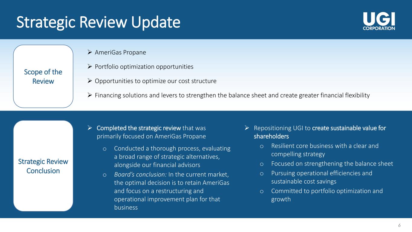 improvement plan for AmeriGas. The review concluded that disciplined execution of a revised operational strategy and optimization of UGI’s diverse mix of strategically located assets best positions the company to create long-term shareholder value.
