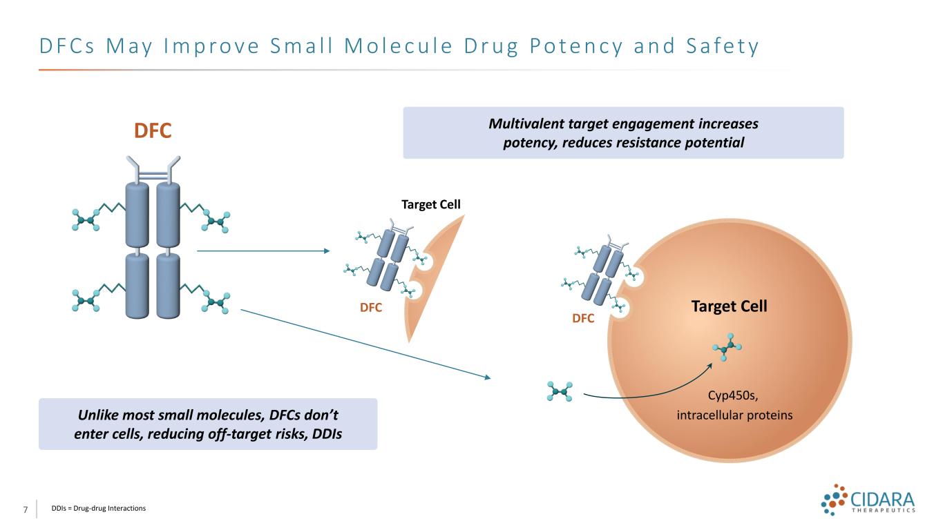 7 D F C s M ay I m p ro v e S m a l l M o l e c u l e D r u g Po t e n c y a n d S a fe t y DFC Target Cell Target Cell Cyp450s, intracellular proteins Multivalent target engagement increases potency, reduces resistance potential Unlike most small molecules, DFCs don’t enter cells, reducing off-target risks, DDIs DFC DFC DDIs = Drug-drug Interactions