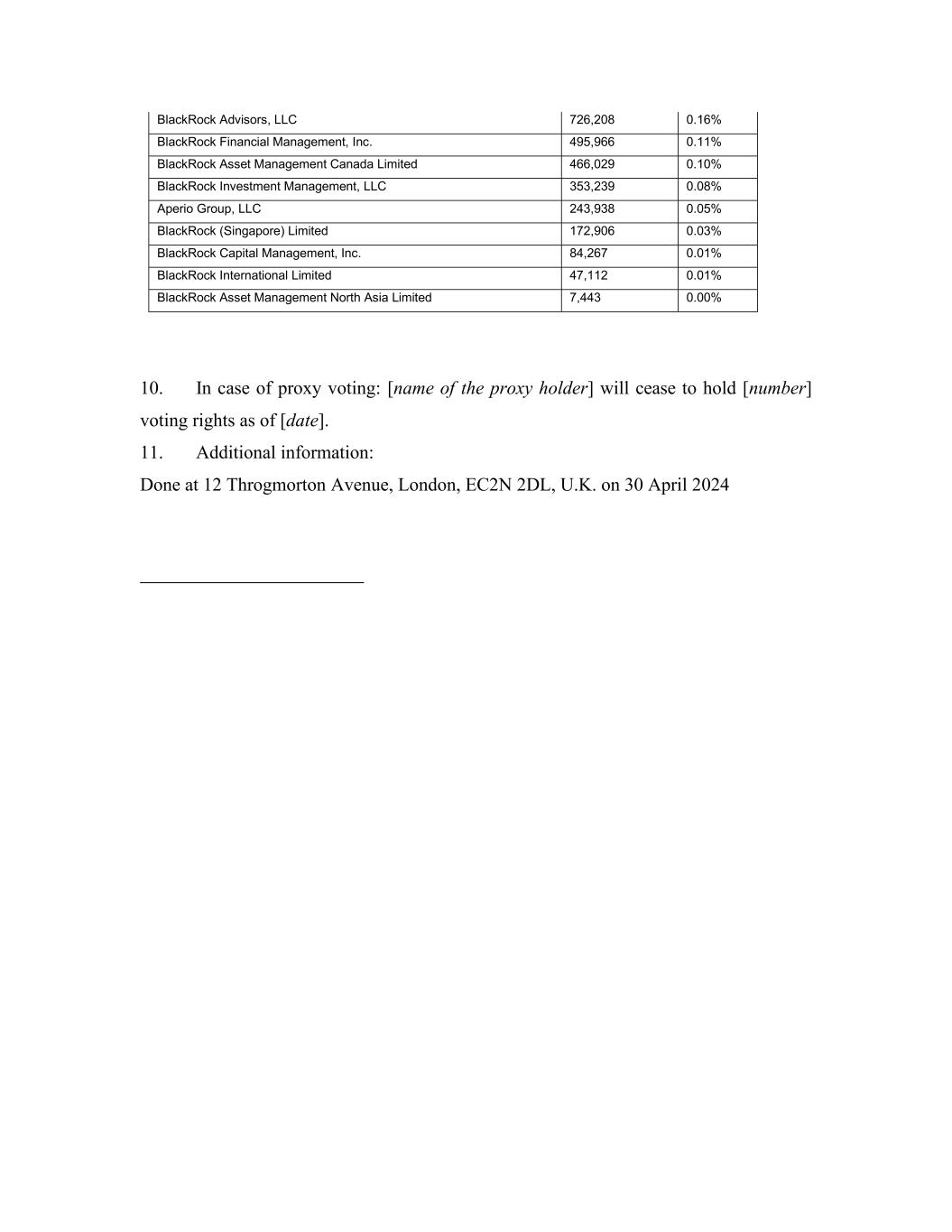 | Date: 03 May 2024 | | By: /s/ Aoife Rockett |