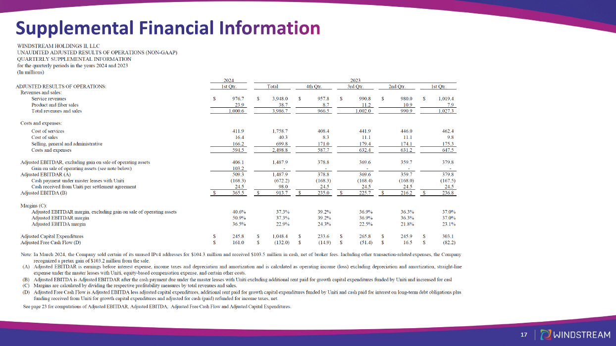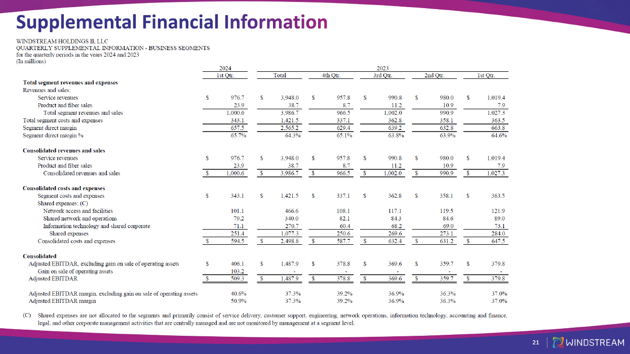 | 99.1 | Windstream presentation regarding the period ended March 31, 2024 | |