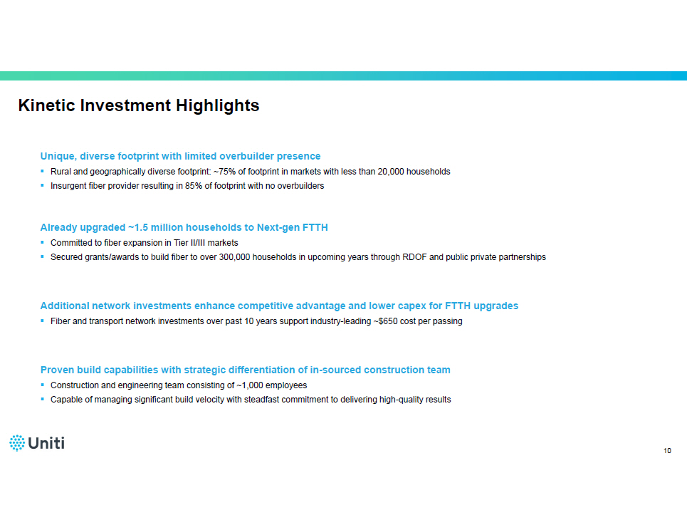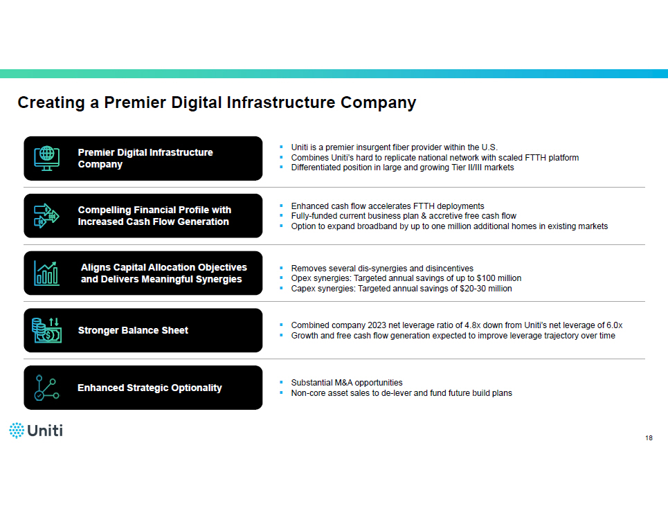 | • | Enhanced Strategic Optionality: With a scaled national platform and high-quality fiber portfolio, the additional value creation from this transaction greatly increases Uniti’s optionality for strategic initiatives. |
