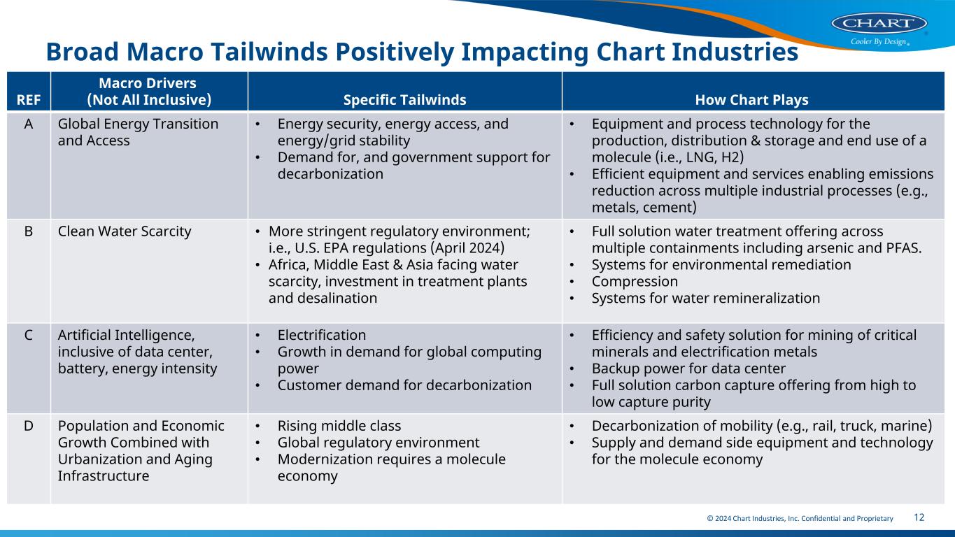 © 2024 Chart Industries, Inc. Confidential and Proprietary 11 Agenda Q1 2024 Results Key Drivers 2024 Outlook Medium Term Outlook
