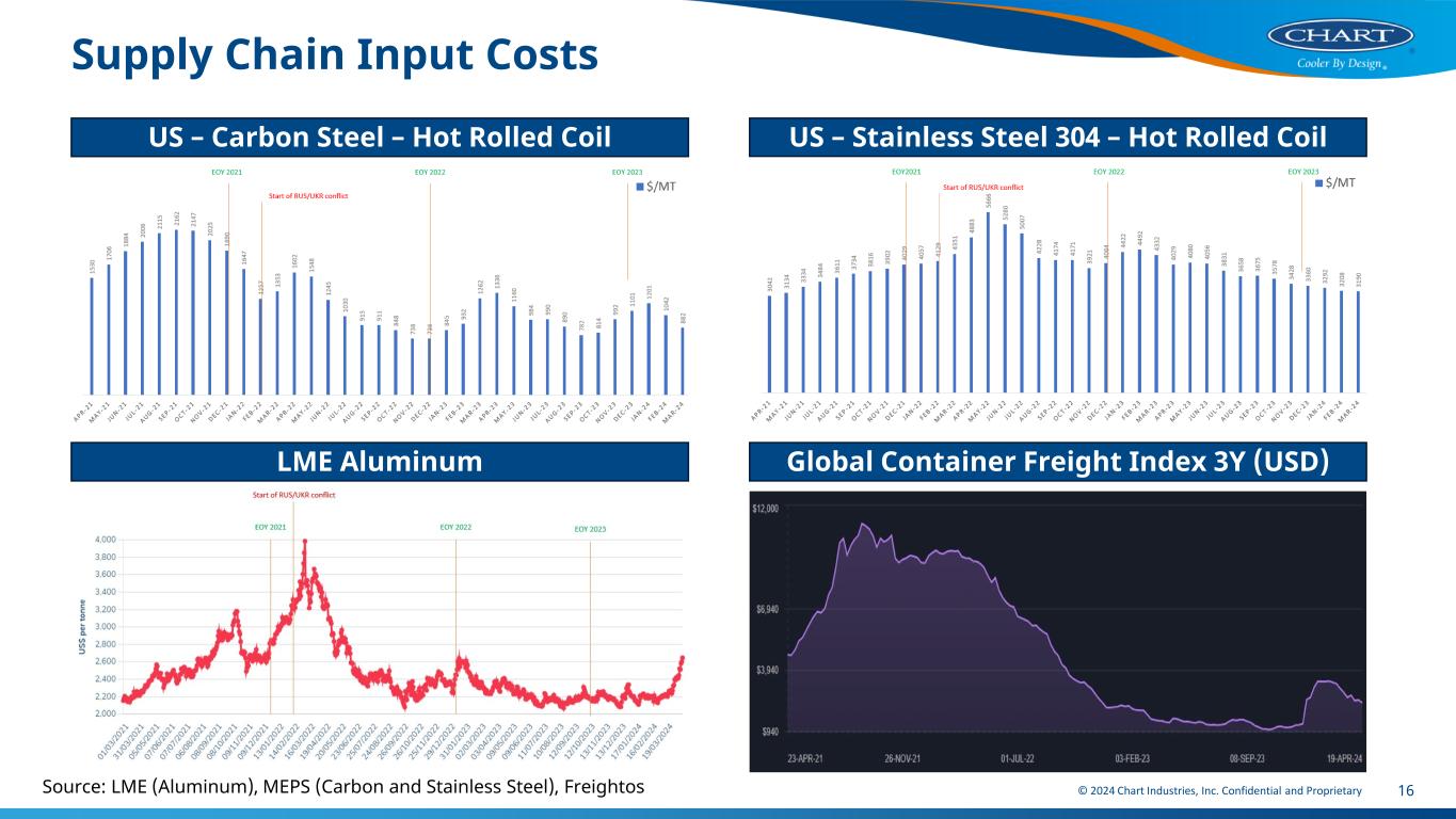 © 2024 Chart Industries, Inc. Confidential and Proprietary 16 Supply Chain Input Costs Source: LME (Aluminum), MEPS (Carbon and Stainless Steel), Freightos US – Carbon Steel – Hot Rolled Coil US – Stainless Steel 304 – Hot Rolled Coil LME Aluminum Global Container Freight Index 3Y (USD)