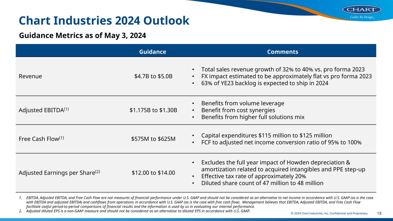 © 2024 Chart Industries, Inc. Confidential and Proprietary 17 Agenda Q1 2024 Results Key Drivers 2024 Outlook Medium Term Outlook